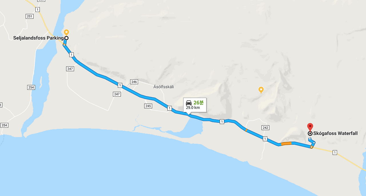 이런 날은 정말 차 문을 여는 것도 주의해야 한다. 차량 렌트를 수소문하며 온라인의 후기들을 검색할 때 폭풍우에 차 문을 열다 문 짝이 꺾였다는 무용담을 종종 본 적이 있기 때문이다. 여하튼 난리 법석 속에서 침착함을 유지한다는게 보통 일이 아니다. 내 정신과 영혼을 제외하고는 차 안에다 모든 짐을 다 실었다. 보온 물 통에 따뜻한 물만 급수하고 1번 도로 동쪽으로 30분 거리 이내에 있는 스코가포스로 향한다.