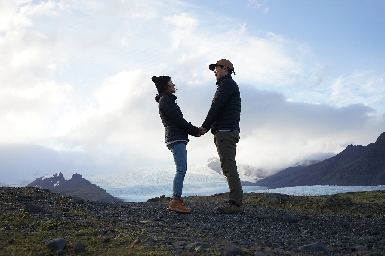 가기 쉽지 않았지만 다행히 길은 있었다. 그리고 도착했다. 대책 없이 마주한 웅장한 자연에 그야말로 압도당했다. 탄복하며 반사적으로 터지는 호흡은 "우-와"라는 소리를 만든다. 감격한 만큼 아주 긴 소리가 나오는데, 길게 뱉은 만큼 다시 숨을 들이마실 때는 빙하를 스치고 온 차가운 공기가 폐 끝까지 닿는 것만 같다. 얼굴 쪽으로 날카롭게 부는 바람은 빙하를 향해 서있는 우리 둘을 더 꼼짝하지 못 하게 한다. 만약 고민 끝에 이 곳에 오지 않았더라면 느끼지 못했을 소중한 감정까지 카메라에 서둘러 담는다.