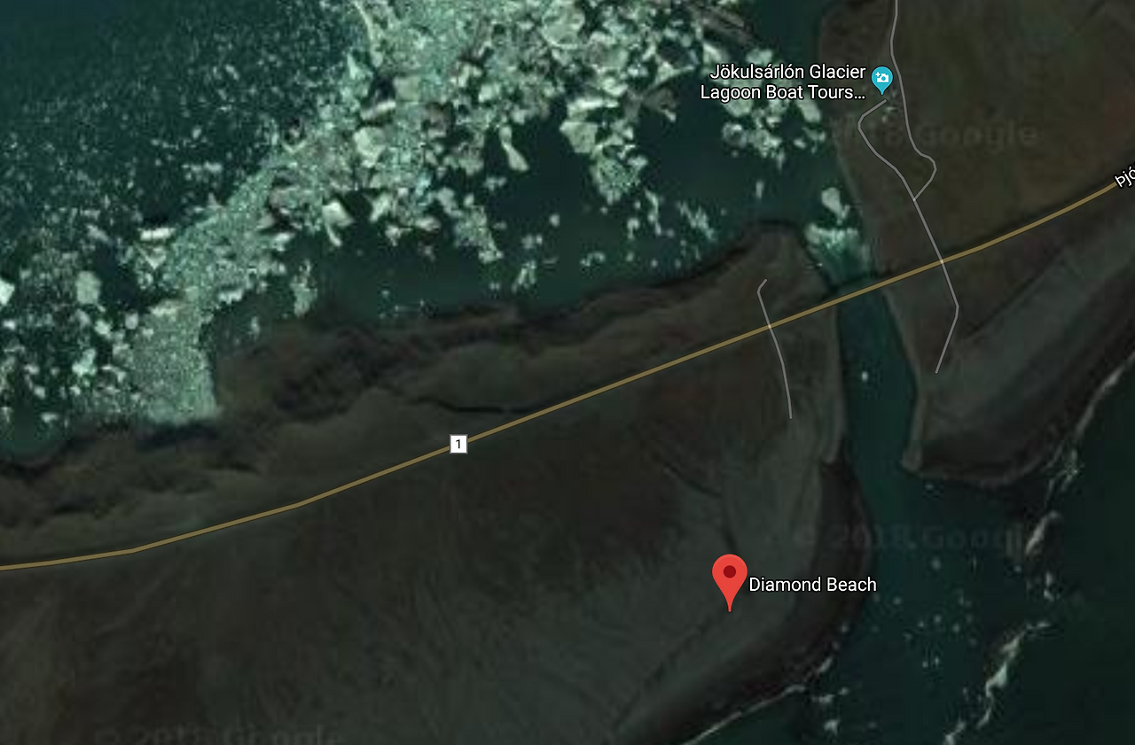 드디어 Jökulsárlón 요쿨살롱에 도착했다. 우리는 다이아몬드 해변을 먼저 돌아보기로 했다. 큰 이유는 없다. 상대적으로 주차 공간이 한적했기 때문이다. 주차장을 선택할 수 있을 정도로 요쿨살롱과 다이아몬드 해변은 1번 도로를 사이에 두고 가까이에 있다.