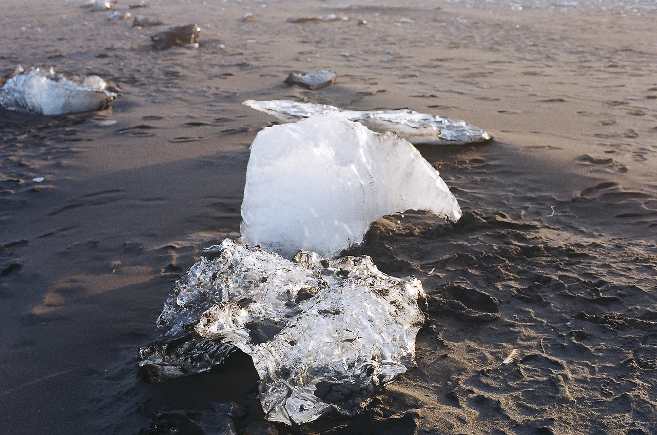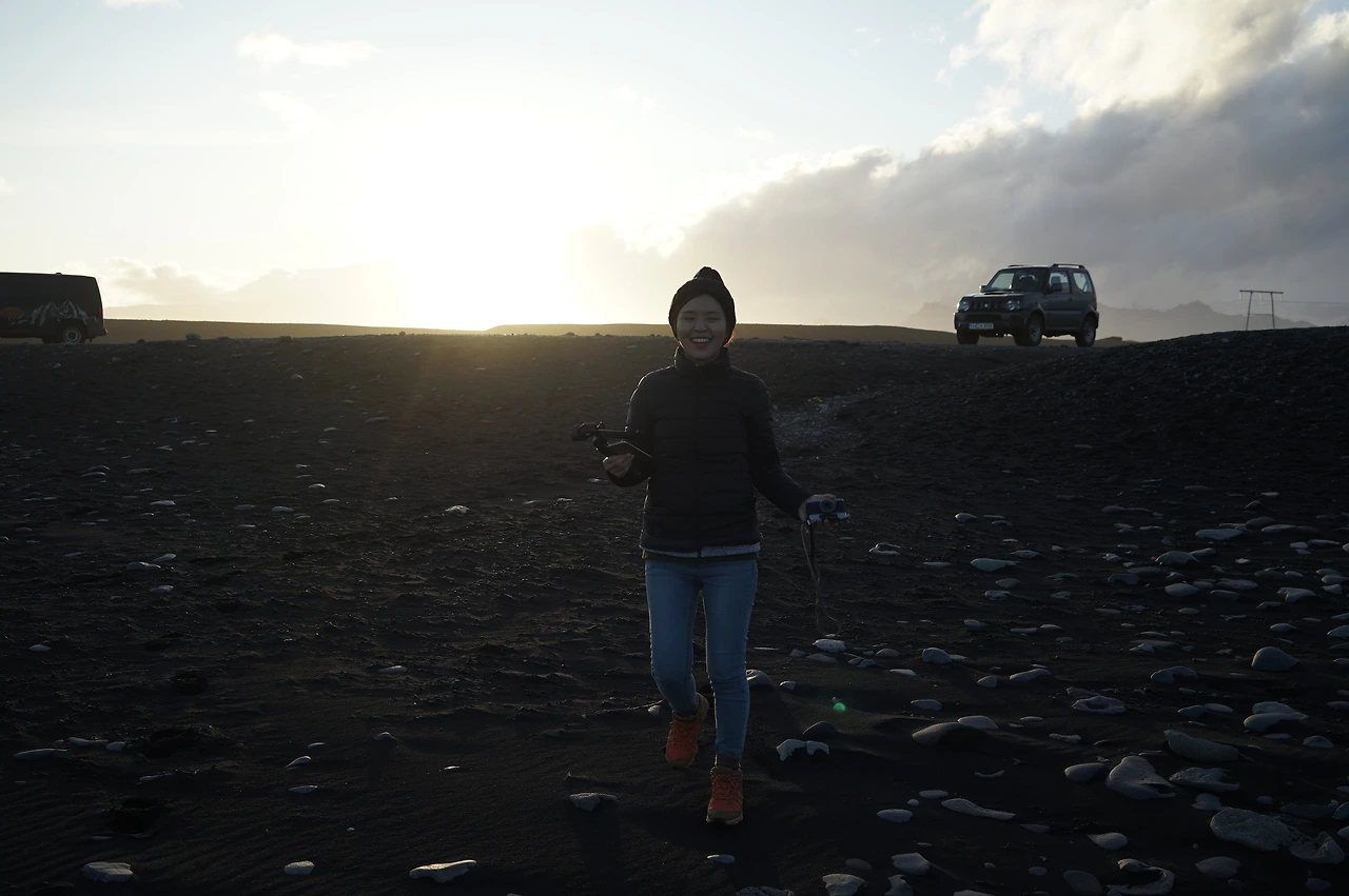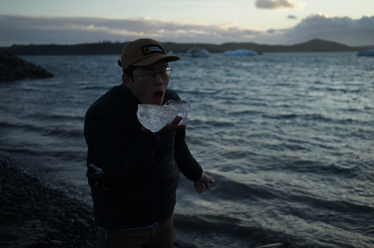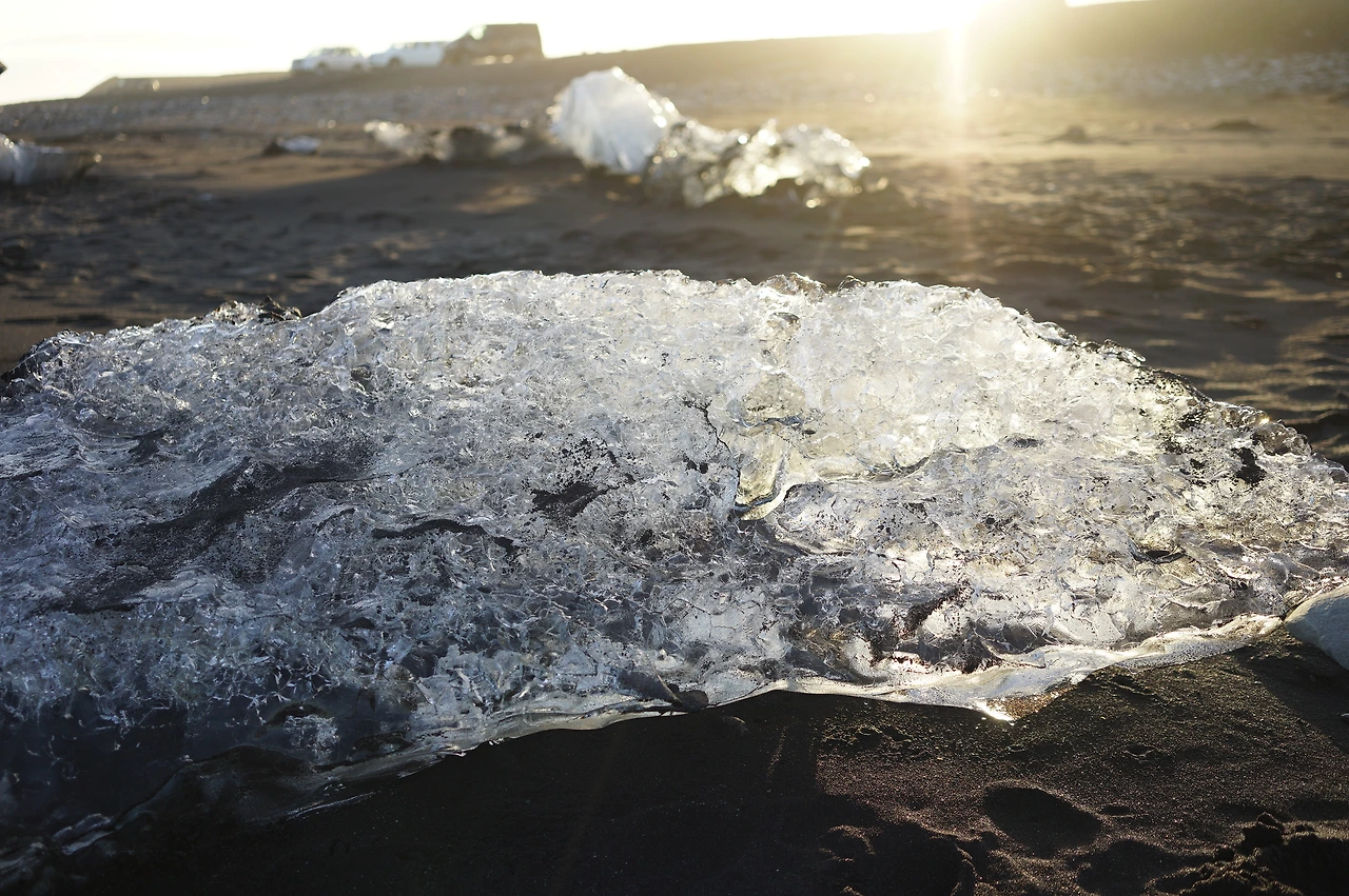 다이아몬드라는 우아한 이름과는 다르게 사실은 굉장히 슬픈 곳이다. 바트나요쿨에서 흘러나온 요쿨들이 바다로 흘러가는 빙하 생애 마지막 구간이기 때문이다. 영겁의 시간 동안 대기의 화석으로 존재했던 빙하가 한순간 흔적도 없이 소멸하는 곳이다. 그렇게 사라지기 바로 직전의 얼음 조각들이 검은 모래사장 위 여기저기 놓여있다. 우리가 도착했을 때 마침, 석양의 잔광들이 얼음을 투영하고 있었다. 아마도 이 해변의 이름을 처음 고안한 사람도 이 시간 우리가 본 비슷한 장면에 마음을 빼앗겼을 것이라.