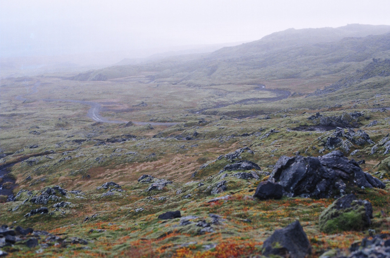 이런 이야기들에 못지않은 무용담 하나를 더할 수 있게 되었다. 아이슬란드 F로드에서 운전을 한 이야기다. 정확하게는 비바람이 부는, 스네이펠스 요쿨 국립공원 안에 있는 F570번 도로를 탄 이야기다. F로드는 아이슬란드의 하이랜드의 오프로드 구간을 말한다. Oxi로 가는 길이라던지 데티포스 길은 이 길에 비하면 가소로울 정도다. 조수석에 탄 탑승자 분은 얼굴이 사색이 되었다. 우리가 차로 밟고 있는 산 길이 도대체 도로인지 아닌지를 누군가가 지나갔을 바퀴 자국으로 판단해야 하는 상황이다. 더구나 바로 옆은 산비탈이다. 행여나 차가 미끄러지기라도 하면 저 돌멩이들처럼 협곡 사이 빙판으로 굴러갈 판이다. 속도를 낼 수 없어 천천히 이동해야 할 수밖에 없다. 어느새 해는 뉘엿뉘엿 자취를 감추고 있고, 산 위로 올라갈수록 안개가 짙어진다. 산 밑에서는 구름이라고들 생각하겠지. 딱 전설의 고향에 나올 법한 으스스한 분위기다.