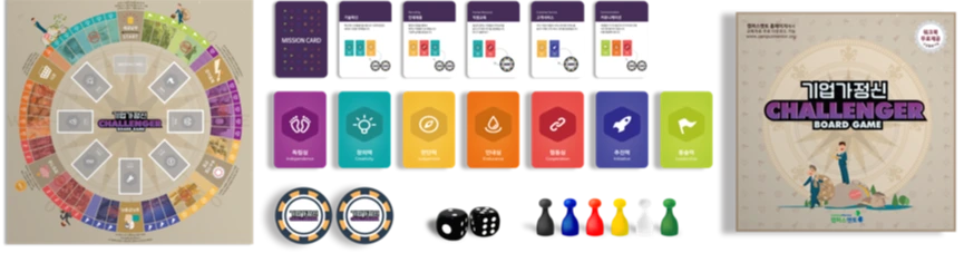 이 같은 게임들을 참고하여 자체적으로 기획하고 제작한 챌린저 보드게임은 간단하게 정리하면 "역량을 모아, 미션을 해결하여, 보상을 얻는 게임”이다. 기업가정신의 작동 원리가 기본 플로우다. 4-6명의 플레이어들은 주사위를 굴려 보드판의 구역을 이동하며 기업가정신을 구성하는 7가지 대표 역량 키워드가 적혀 있는 챌린저 카드들을 획득한다. 기업의 여러 가지 경영 이슈들이 쓰여있는 미션 카드 또한 보드판 일정 구역에 도착함에 따라 가져 가는데, 이때 미션 카드에서 제시한 챌린저 카드 조합이 있을 때 챌린저 코인으로 바꿔 가져 갈 수 있다. 제한 시간 동안 가장 많은 챌린저 코인을 보유한 플레이어가 승리한다.