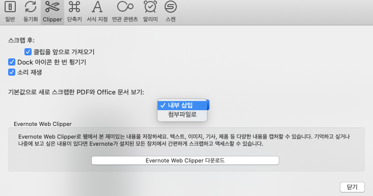 제가 잘 활용하는 검색 중의 기능 하나는 PDF 속 텍스트 검색 기능입니다. 보통 논문이나 간행물 등의 보고서들이 이런 형태로 저장이 되어있는데요. 이것도 에버노트에서 텍스트 검색이 가능합니다. 단, 첨부파일 형태가 아니라, 환경설정에서 첨부 파일이 아니라 내부 삽입으로 설정해야 합니다.