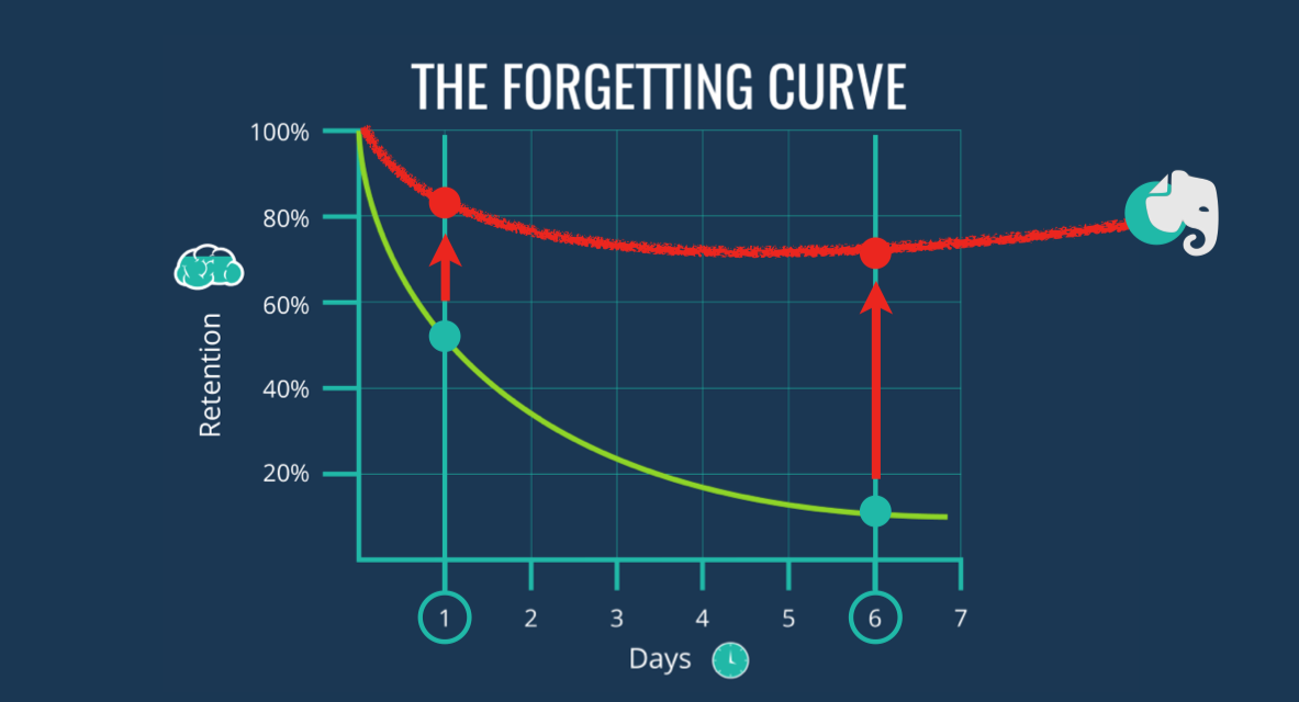 인정할 건 해야겠습니다. 우리는 망각의 동물입니다. 그래서 새로운 내일을 기다리는 즐거움이 있지만, 반면에 기억하고픈 어제의 모습도 잊게되는 아쉬움도 존재하죠. 에버노트에 열심히 노트를 만드는 이유입니다. 하지만 메모와 기록만으로는 기억을 완전하게 만들 수는 없습니다. 그래서 반드시 이것을 해야 합니다. 바로 반복적인 노트 열람입니다.