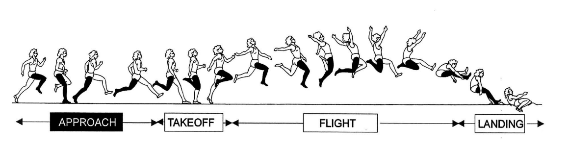 높이뛰기에서는 수평 속도가 최종 결과에 미치는 영향력이 덜하다. 선수들의 목표는 도움닫기 시 최고 속도에 도달하는 것보다는 수직 속도로 전환하기 위한 최적의 상태에 도달하는 것이다. ... 적정 속도를 내는 것은 아주 중요하다. <종목별기초트레이닝> 중 도약의 기초(78p), 대한육상연맹