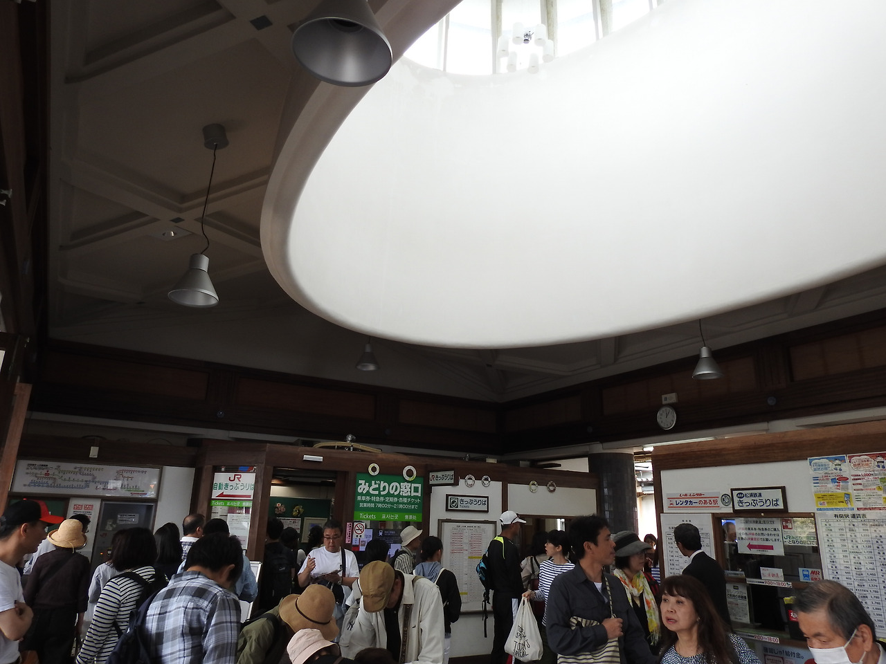 패스는 일반 전자 개찰구가 아니라 가장자리 역무원이 서있는 곳으로 지나가면서 여권과 함께 티켓을 보여주면 통과할 수 있다. 제대로 확인을 하는 것인지 의문이다. 날짜만 보는 것 같기도 하고, 그마저도 안 보는 것 같다. 본인 확인을 한 적이 없는데 얼마든지 악용하려면 할 수 있을 것 같지만... 타국에서 부끄러운 짓은 안하기를 진심으로 당부한다. 패스만 있으면 별도 예약을 하지 않더라도 각 열차에 할당된 자유석칸 빈자리에 앉아서 가면 되는데, 이런 성수기에는 자리가 없을 가능성이 크다. 때로는 자유석도 좌석이 배정된 경우가 있어서, 시간적 여유가 있다면 각 역마다 배치되있는 JR패스 전용 창구에 미리 가서 지정석을 예매하고 가는 것이 편하다. 일본어를 어느 정도 할 줄 알아야 유리하다. 철도 노선이 너무나 복잡하다보니 직원이 더 모르는 경우가 있다. 내가 얼마나 공부하고 가느냐에 따라 더 빨리 가는 길을 내가 설명해주고, 입석도 앉아서 갈 수 있다.