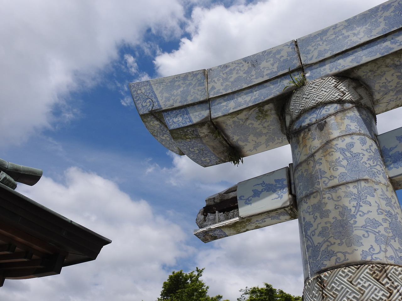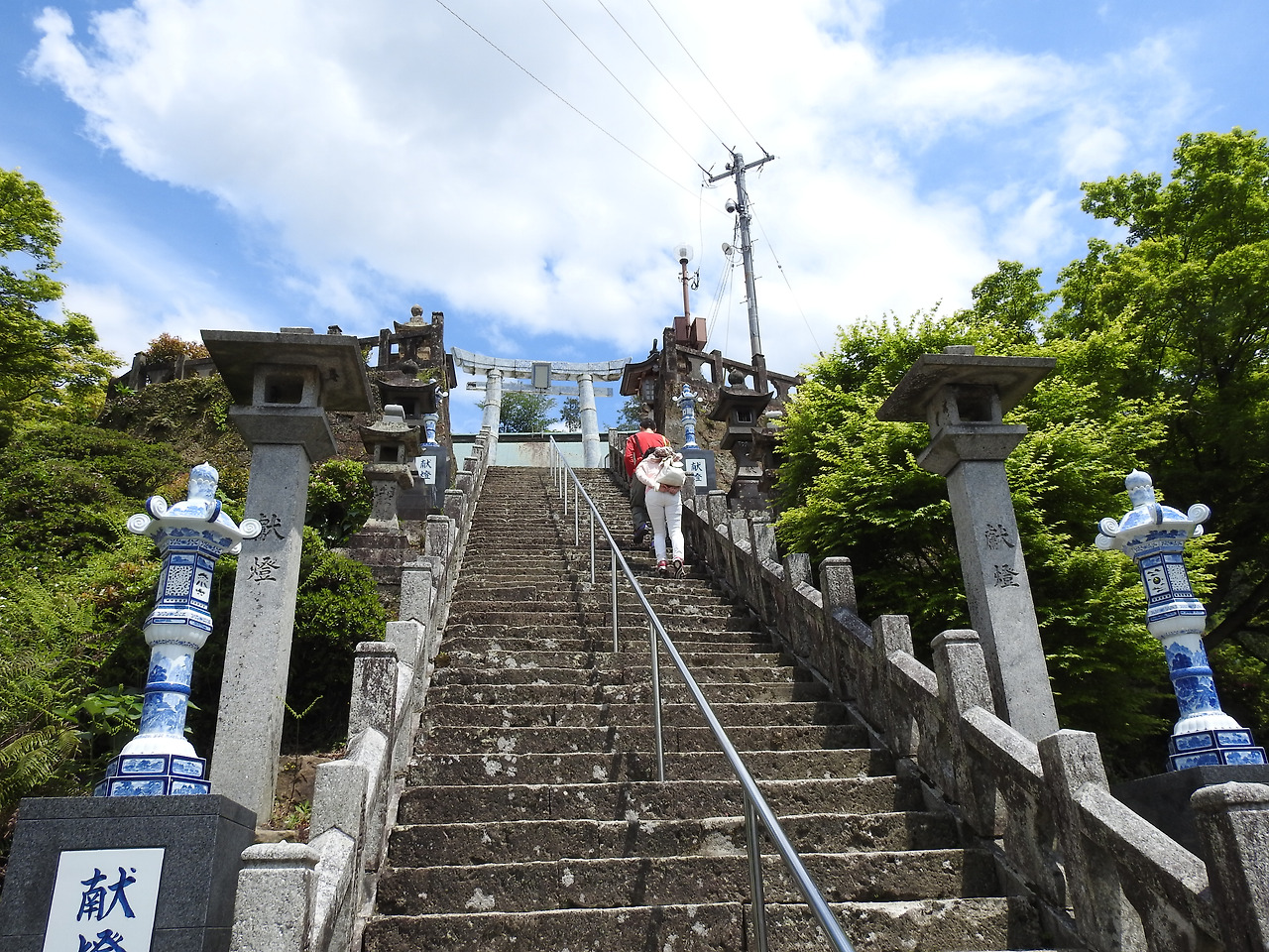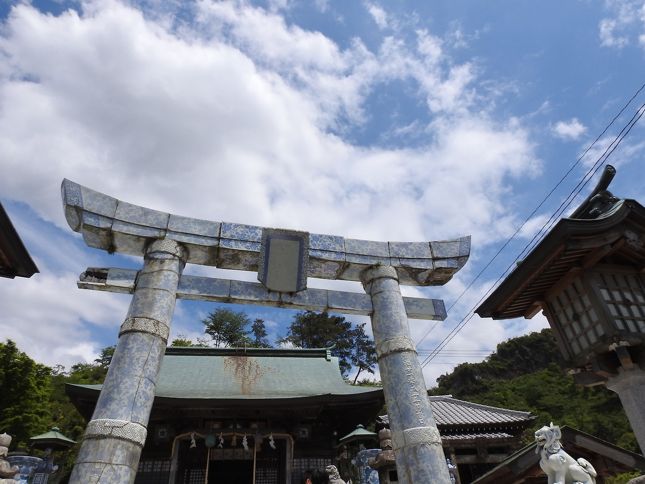 명불허전. 도자기의 명소답게 신사 자체도 도자기 일색이다. 어떻게 만들었나 싶을 정도로 놀라운 토리이. 1888년에 만든 것으로 유형 문화재로 등록되있다. 어찌 보면 아리타의 랜드마크가 될 수 있을텐데, 딱히 홍보하지 않는다. 3.7 ~ 3.9m라고 되있다. 도자기에도 녹이 스는 것인지. 썩진 않지만 깨지는 문제가 있다.