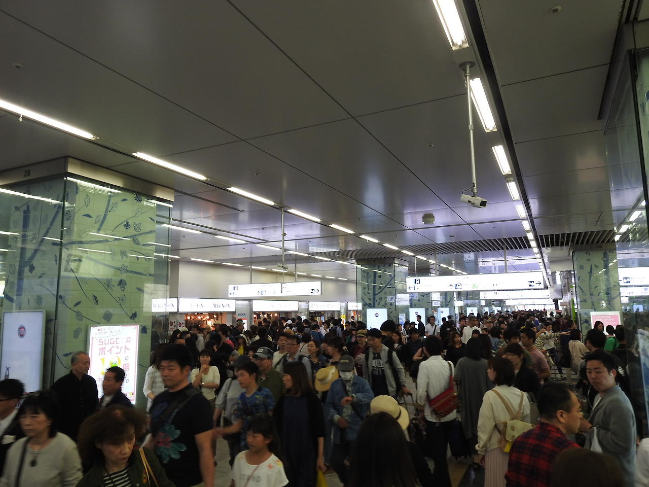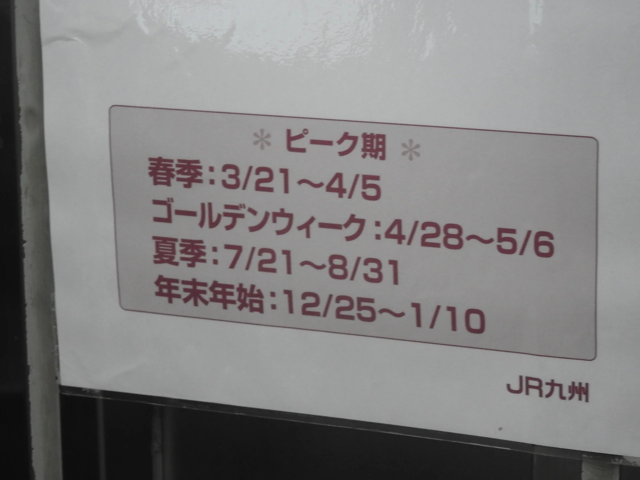 문제는 날을 잘못 잡았다. 한국의 연휴와 일본의 긴 골든위크가 겹치는 드문 현상. 말 그대로 인산인해를 이루었다. 게다가 하카타 역은 통로가 너무나 많아 혼란스럽다. 백화점 쇼핑객, 관광객, 지하철-신칸센-일반 열차 등에서 한꺼번에 내리는 사람들. 아이는 미아될 가능성이 높다. 정신을 잘 차리고 이정표를 보고 제대로 된 기차를 타야한다. 일본에서 성수기는 크게 4회 있는데 가능하면 이 기간을 피해서(?) 여행을 가라고 하고 싶다. 해마다 날짜가 바뀌니 요일에 따라 며칠씩 차이가 날 수는 있지만, 올해 2017년을 기준으로 하면.