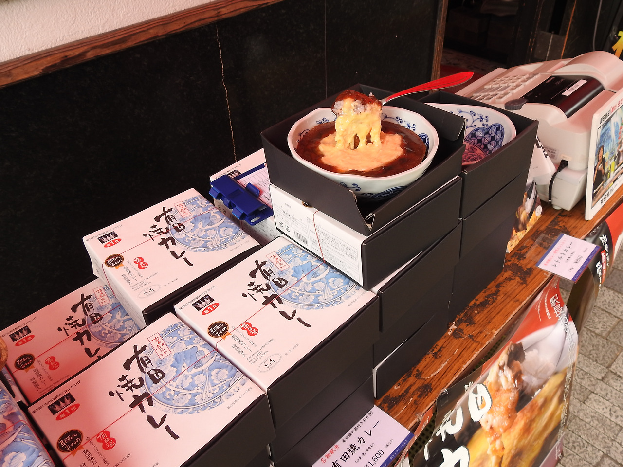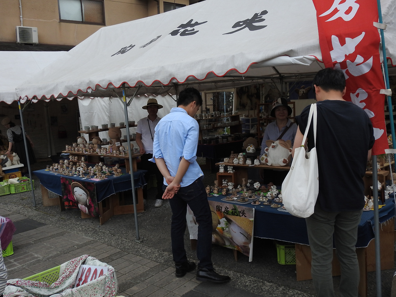 원래부터 도자기 마을이지만, 골든위크를 맞이하여 축제를 겸해 유독 더 준비를 많이 한 듯했다. 여러 축제 때만 볼 수 있는 노점상들이 함께 있었지만, 꼭 아리타가 아니어도 볼 수 있는 것들이라서 패스. 식당도 인상적인 곳은 줄이 길게 늘어서있는 장어집 뿐이었는데 그보다는 구운 카레(야키카레, 焼きカレー)를 추천한다. 짐이 늘어나는 것이 싫어서 나는 구경만 했다. 치즈 또는 다른 토핑을 넣고 위를 한 번 더 살짝 굽는 형식의 카레는 한국에 없기 때문에 처음 먹는 사람에게는 독특한 경험이 될 것이다. 덤으로 먹은 카레 그릇을 준다! 물론 이 또한 아리타야키. 카레를 다 먹고 깨끗이 씻어서 보관하면 추억의 기념품이 될 것이다.