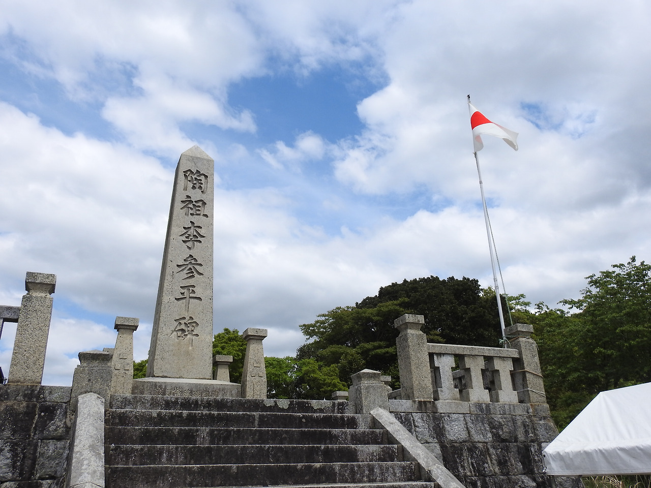 태극기 아래서 아리타를 한참 바라보다 다시 내려왔다. 이정표에 이삼평 묘도 있다고 하여 갔는데 아무리 가도 알려준 방향에는 묘지 비슷한 것이 없고, 지도도 없어 그냥 되돌아 왔다.