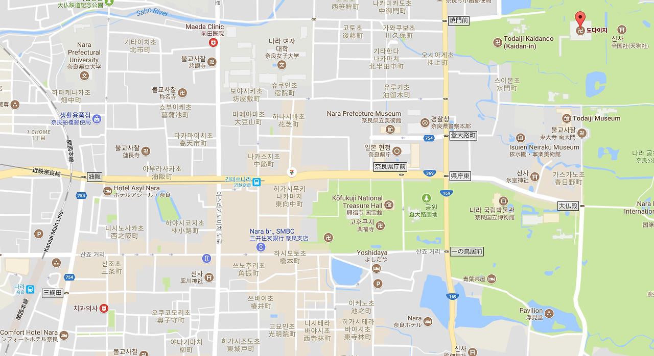 우리나라의 '나라' 그대로 전해졌다는 나라(なら, 奈良). 교토역과는 달리 나라는 역 주변이라도 한적하고 조용하다. 도시의 유명세에 비해 여전히 시골스러워서 더 좋다. 보통 유명 관광지는 JR을 이용하는 것이 더 편리한데, 오사카에서 출발한다고 했을 때 나라만큼은 킨테츠(近鉄) 철도를 이용하는 것이 편리하다. 킨테츠나라 역이 JR나라역사보다 나라 공원에 더 가깝다.