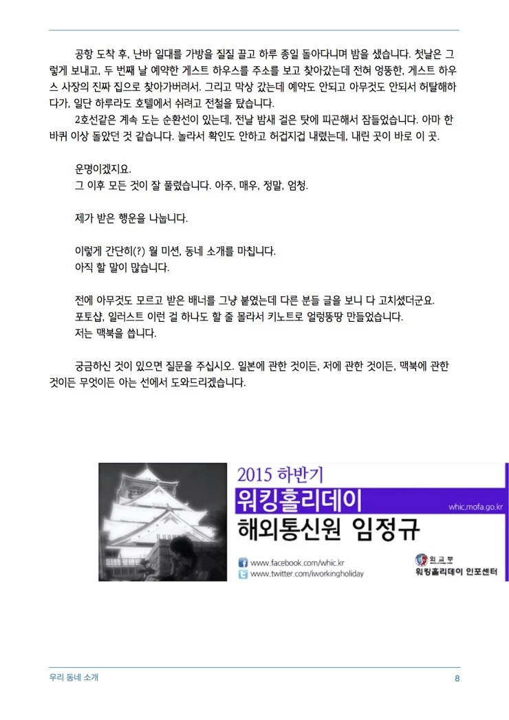 워킹홀리데이 오기 전부터 이 곳을 오려고 한 것은 아니었습니다. 계획이 정말 없는 상태로 무작정 왔습니다. 유일하게 미리 준비한 것이, 당연히 자고 지낼 집은 있어야 하니 이래저래 알아보다 저렴한 게스트하우스가 있어서 예약한 것이었습니다.