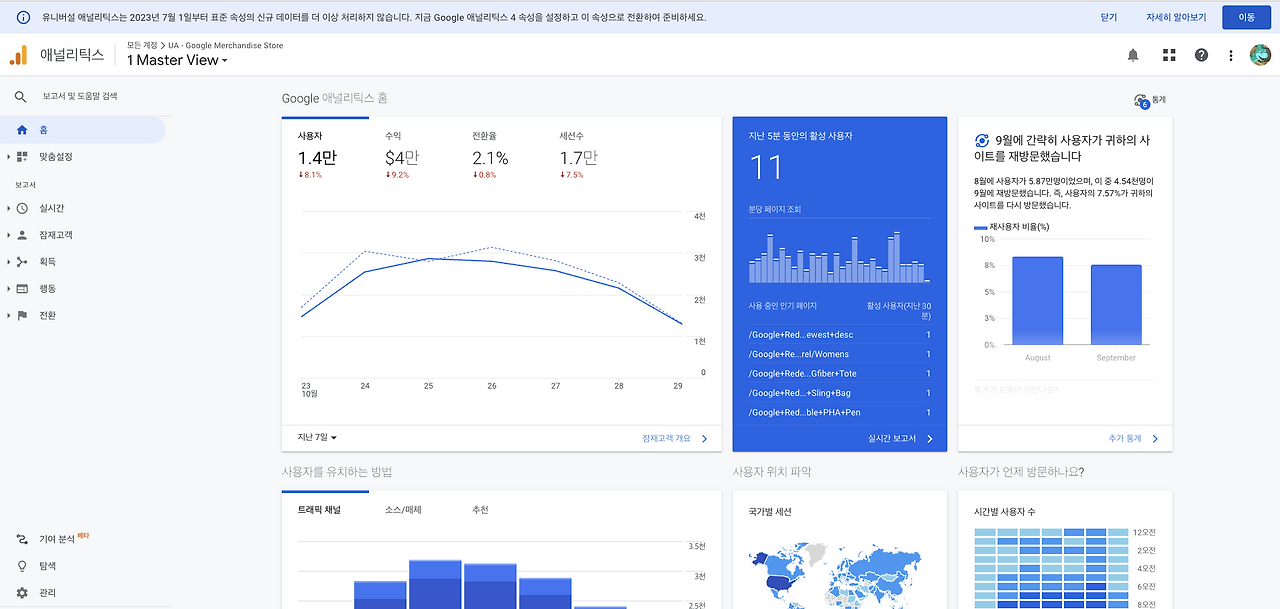제가 현업에서 실무로 확인을 하면 이제 개인 규모의 쇼핑몰 사이트에도 GA가 없는 곳을 찾기가 더 힘들 정도여서, 사실상 온라인 마케팅을 위해서는 이제 대체 불가능한 툴로 자리 잡은 거 같습니다.