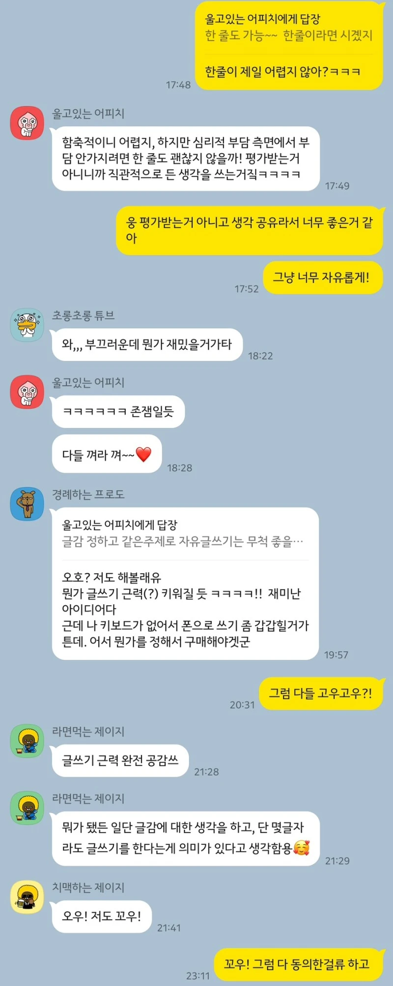 “나도 네 글 좋아하는데. 우리 하나의 주제를 가지고 글 써서 공유해 볼래?