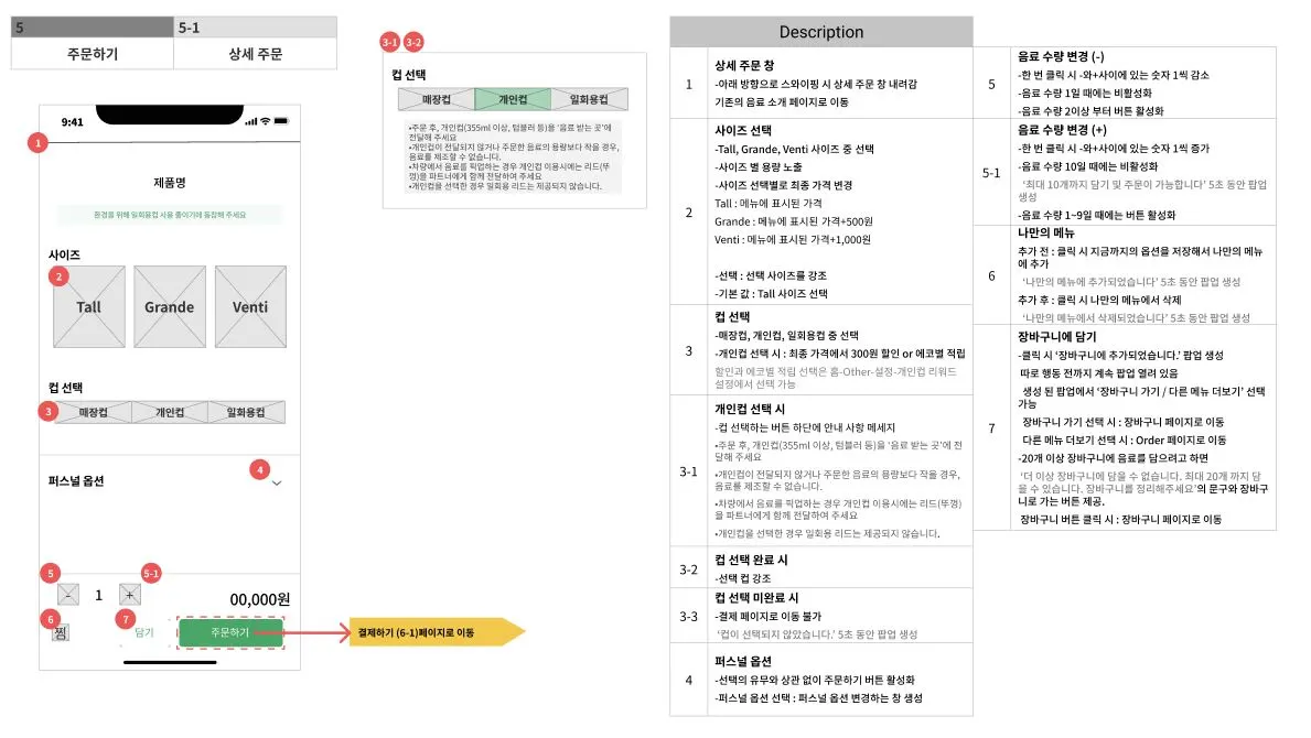 모바일 주문/ 결제 시스템으로 앱을 통하여 주문을 할 수 있는 서비스이다. 앱으로 주문을 해도 음료 커스터마이징과 쿠폰 사용 등을 할 수 있다.