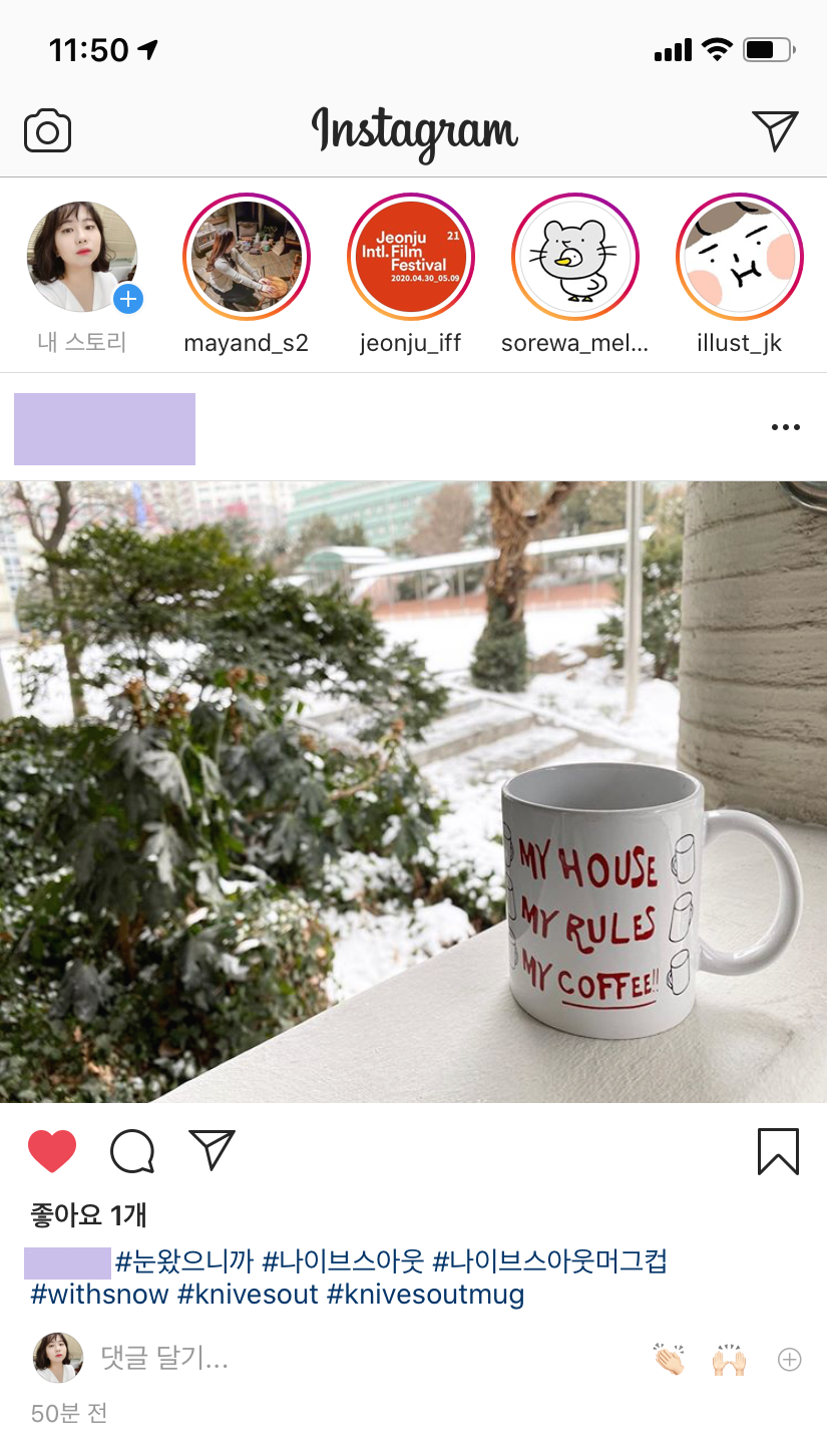 하긴 요즘 비공굿으로 가방이며 옷이며 못 만드는 게 없는데 머그컵이라고 못 만들겠어? 하나하나 누끼 따서 주문하느라 힘들었을 내님께 치얼스.... 그렇게 크리스마스 전 즈음 우리 품에 도착한 컵 두 개. 앞에는 'My House, My Rules, My Coffee!!', 뒤에는 아트 포스터에서 따온 영화 로고다. 공굿이 없으니 직접 비공굿을 직접 만드는 태도는 누가 봐도 내 짝이 분명하셔. 낄낄