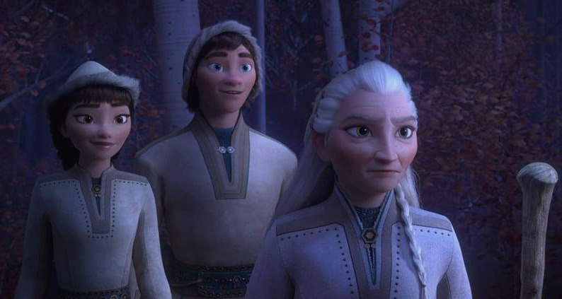 이번 편은 전편에서 미처 다 보여주지 못한 이야기들을 조금 더 확장시키고, 각 캐릭터들의 변화를 말한다. 엘사가 자신이 가진 마법의 힘을 통제시키는 법을 배우고 그 과정에서 동생인 안나와 함께 보여주는 자매애가 전편의 주된 스토리라면, 이번 편에서는 과거 선대의 과오로 위기에 빠진 아렌델을 구하기 위해 모험을 떠난 주인공들의 성장에 초점을 맞춘다. 로그라인과 시놉시스만 봤을 때 다소 뻔할 수밖에 없는 전개지만 영화는 진부하지 않게 풀어내려 러닝타임 내내 다양한 볼거리를 자랑하기 때문에 지루할 틈이라곤 찾아보기 힘들었다. 서사가 조금 부족하다는 평도 있지만 속편에서 이 정도면 연출이면 충분하지 않을까. 그동안 디즈니와 픽사를 비롯한 수많은 애니메이션사에서 속편을 통해 이야기를 보여주던 방식은 꽤나 일관되었기 때문이다. 새로운 캐릭터를 등장시키거나, 그 캐릭터가 엄청난 빌런이거나. 하지만 <겨울왕국2>에서는 이런 공식을 따를만한 새로운 캐릭터가 없다. 도마뱀이 조금 귀엽긴 하지만 올라프만큼은 아니며 빌런인 줄 알았던 저 부족들은 그저 이야기를 전개해 나가는 '소재'에 불과하다.
