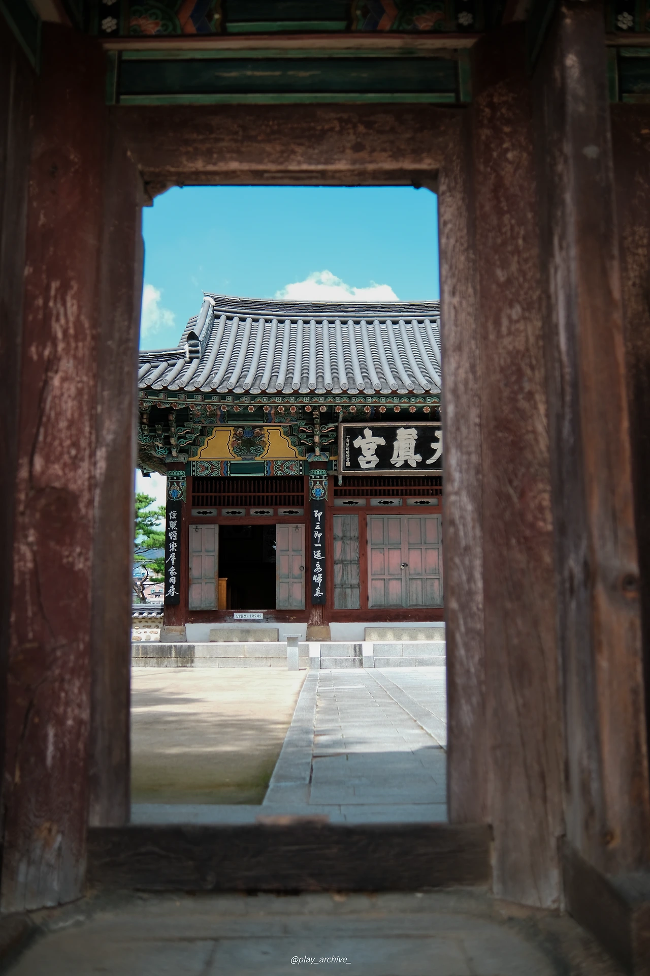 영남루의 맞은편 천진궁으로 들어가는 만덕문. 문은 열려있었지만 보수로 인해 출입이 통제되고 있어서 멀리서나마 천진궁을 담아보았다.