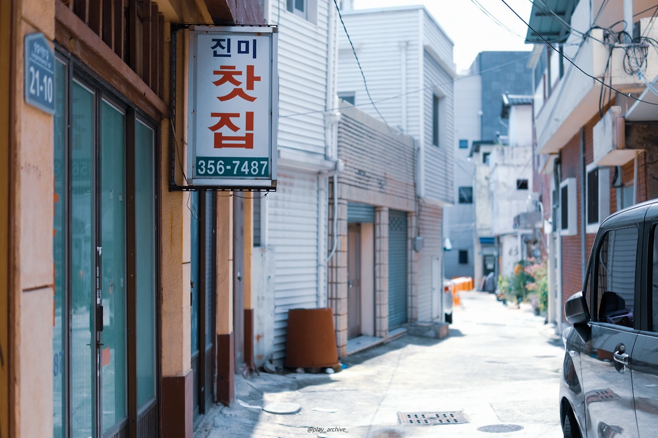 시장의 소음을 뒤로하고 걷다 보면 시간이 멈춘 듯한 간판과 골목이 보인다.