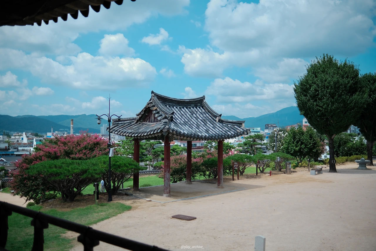영남루는 조선 헌종 10년인 1844년에 재 건조된 누(樓)이다. 본래 누(樓)는 사방이 트여 있고 마루를 높게 만든 일종의 집으로, 손님과 함께 다과를 즐기거나 한적하게 쉴 수 있는 휴식을 목적으로 만들어진 공간이다. 밀양강과 시내가 한눈에 들어오는 뷰인지라 가끔은 밀양 군수가 여러 이들과 함께 음주가무를 즐기기도 했을 것이고, 또 전쟁이 터졌을 당시에는 군사 요새로 요긴하게 쓰였을 것이다. 현재는 밀양 시장 앞 도로를 건너 내려가다 경사가 조금 높은 골목길을 걸어 올라가야 하는데, 내리쬐는 태양 때문에 손에 든 카메라 바디의 온도가 점점 높아질 때쯤 영남루의 입구인 관리사무소가 보였다. 골목에 차량 통행이 불가능한 것은 아니니 굳이 공영주차장을 이용하지 않아도 된다. 날이 더울 땐 체력을 최대한 아껴야 한다.