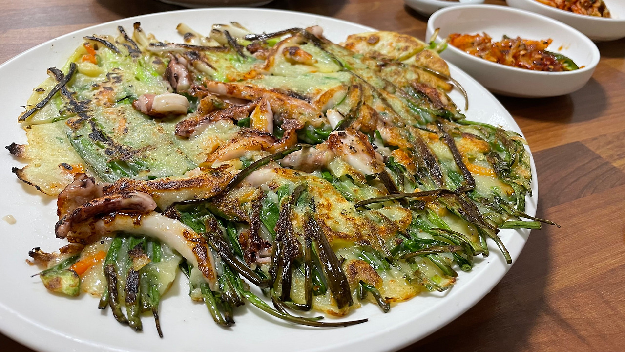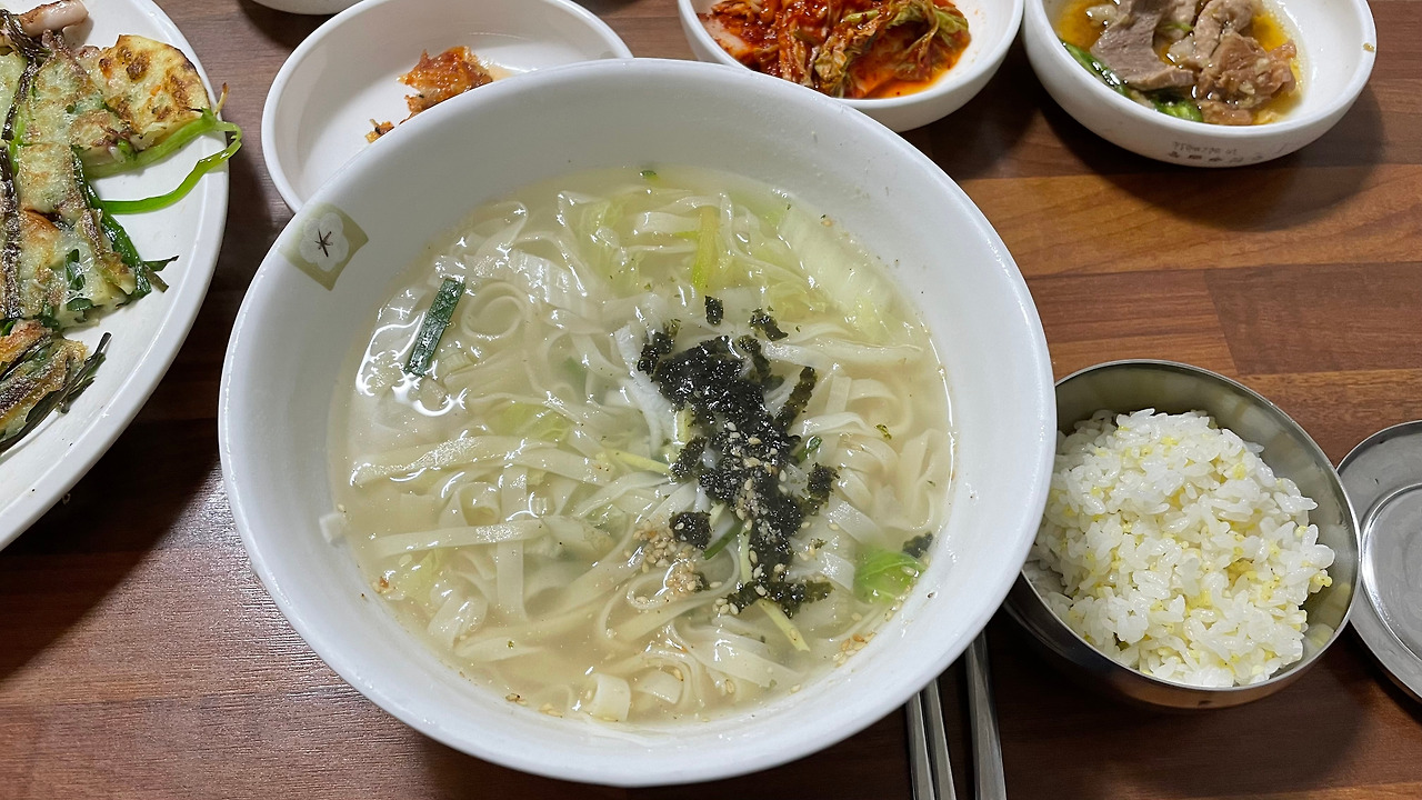 경상도라 간이 세지 않을까 하는 걱정이 있었지만 옥동손국수는 국물도, 면에 배인 맛도 슴슴하다. 면을 다 건져먹은 후 밥을 말아서 김치와 함께 먹으면 궁합이 잘 맞는다. 오징어가 가득 들은 해물파전도 바삭하니 꼭 함께 드셔보시길.