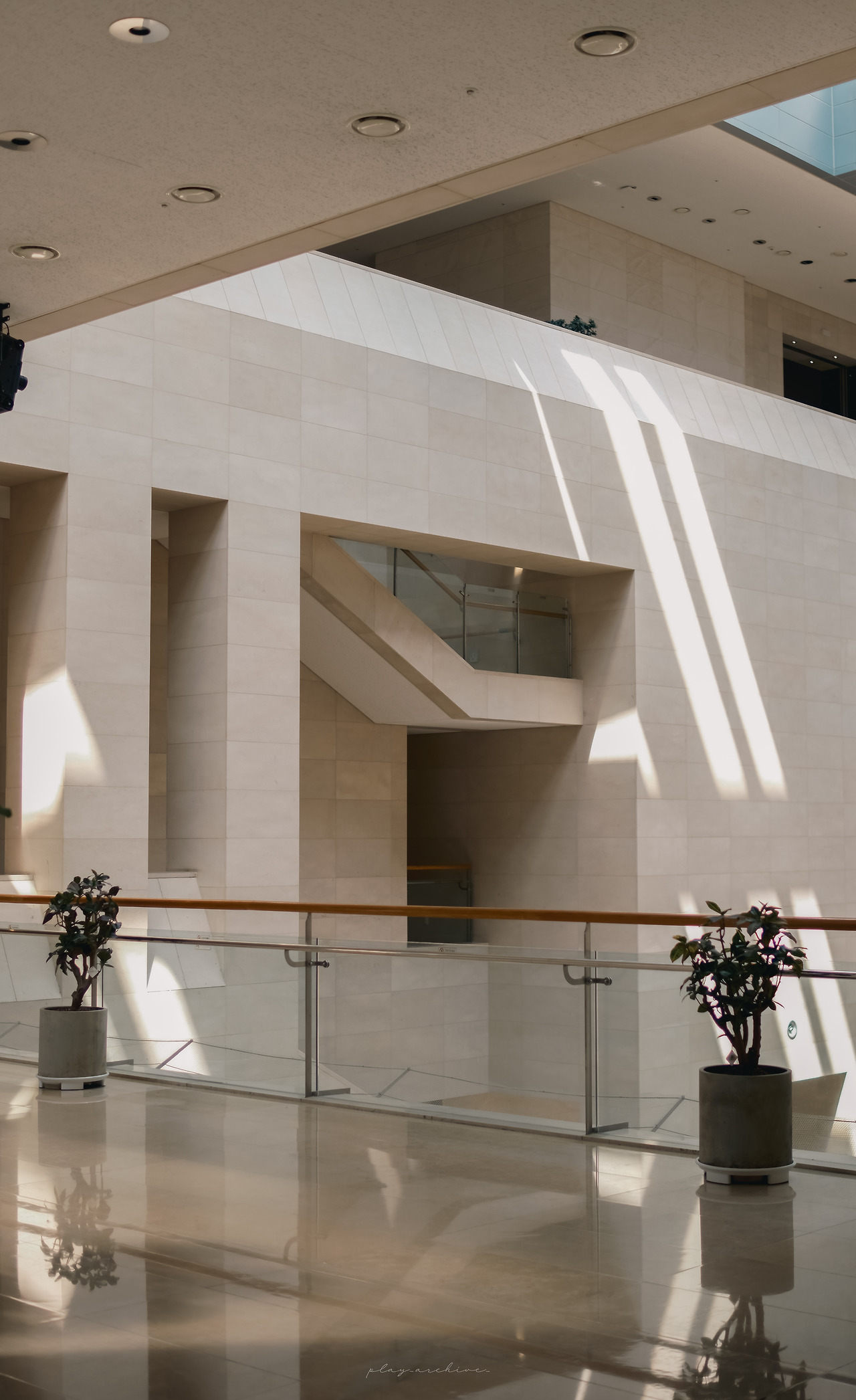 국립중앙박물관은 채광이 좋은 건물이라 이렇게 빛이 들어오는 벽의 느낌도 나쁘지 않다.