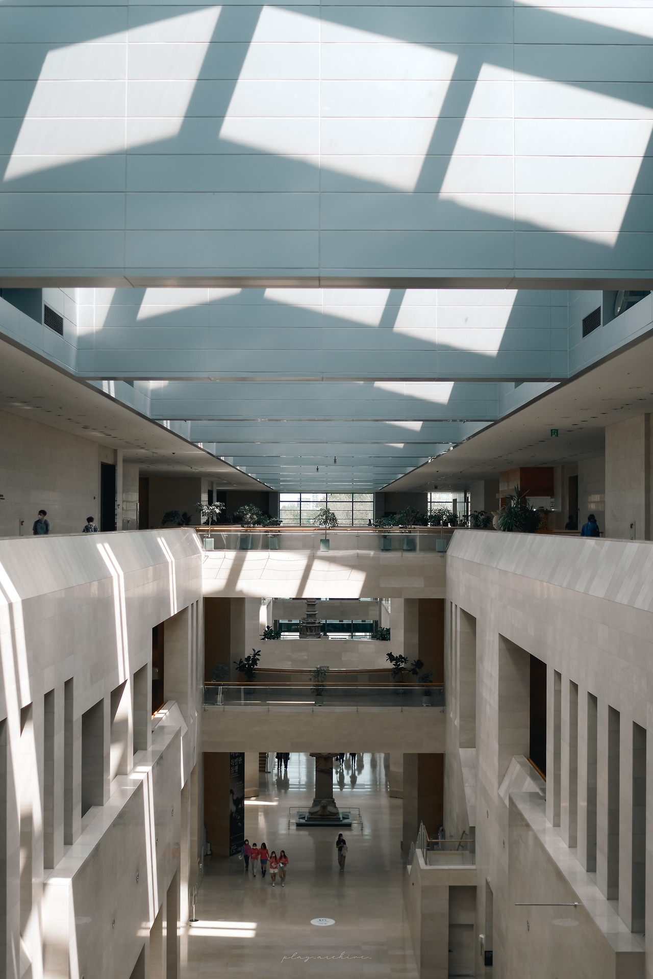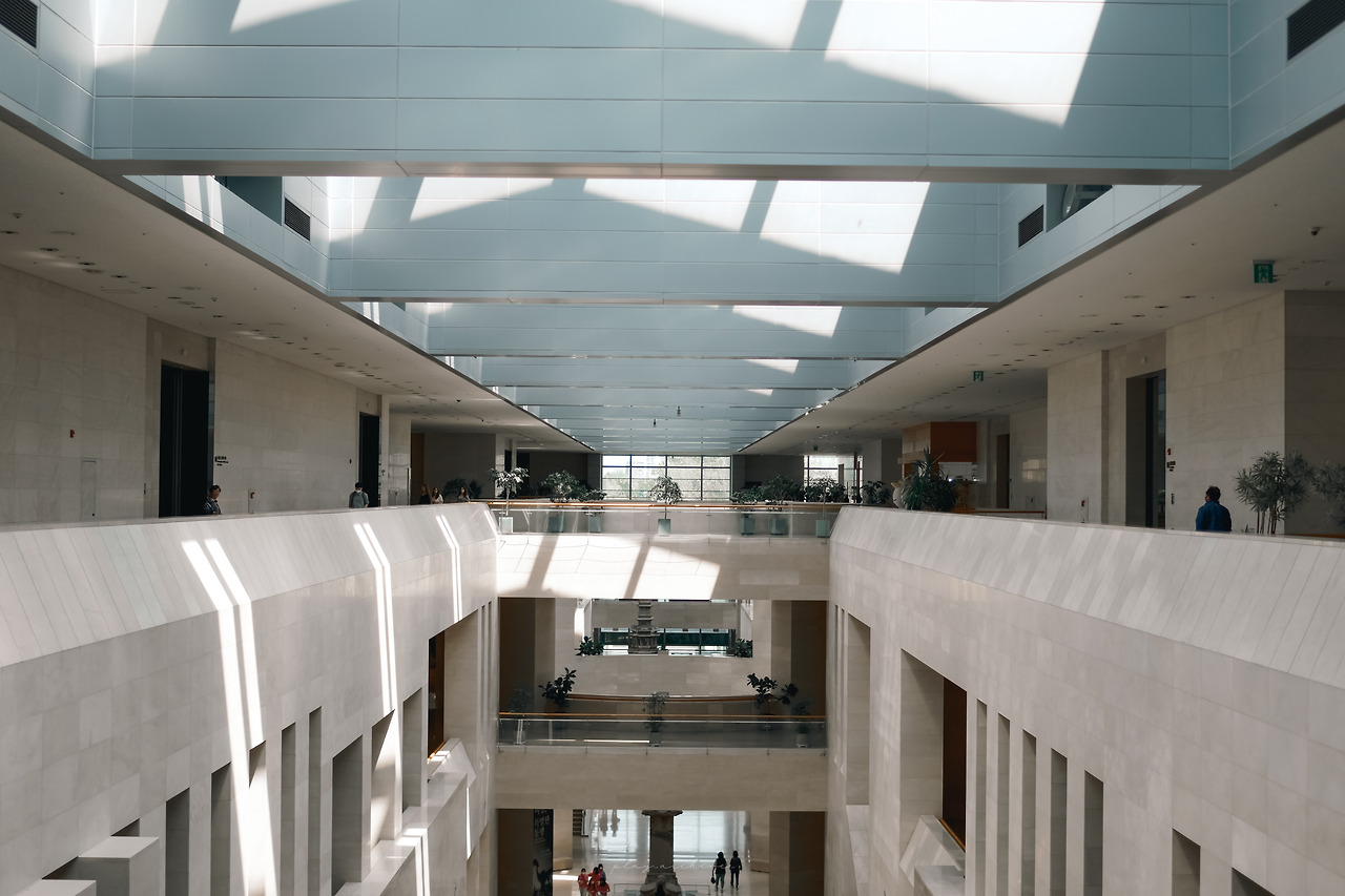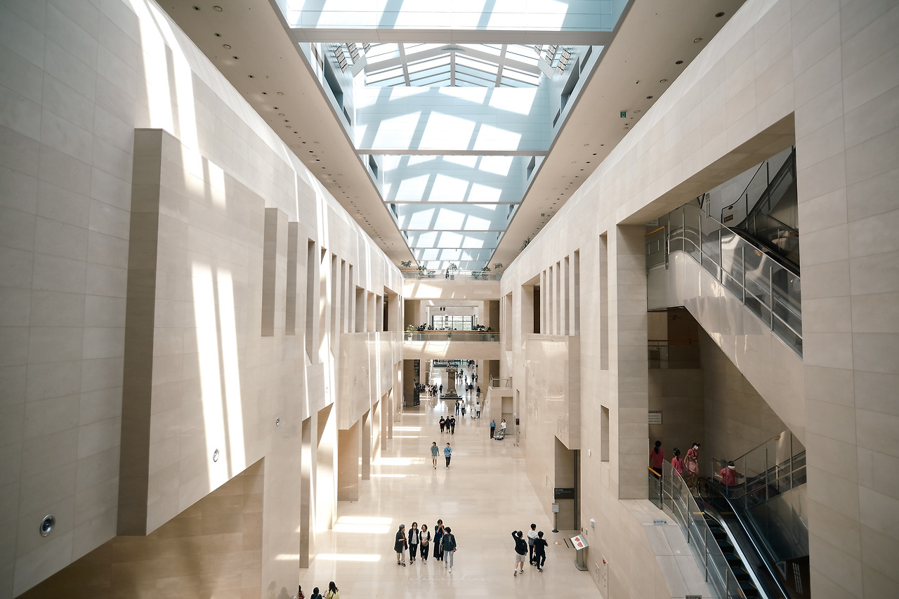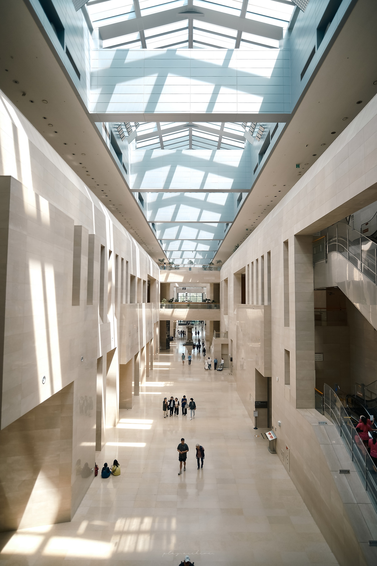 박물관의 내부의 전경을 담으려면 3층보다는 2층이 좋다. 특히 중앙에서 소실점을 잡고 세로로 촬영하면 박물관의 규모를 자랑하는 사진을 얻을 수 있다. 환산 화각 20mm로 촬영했다.