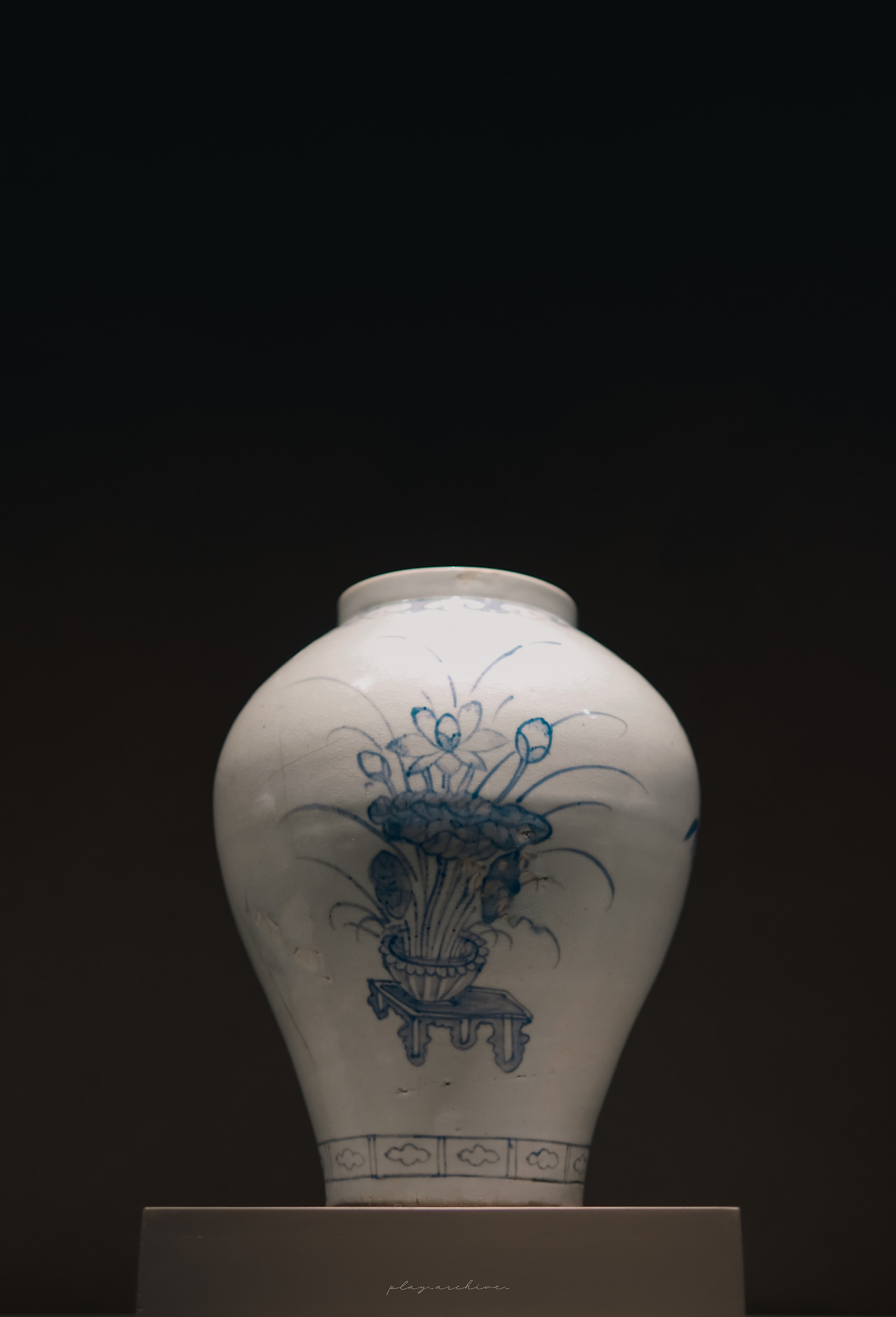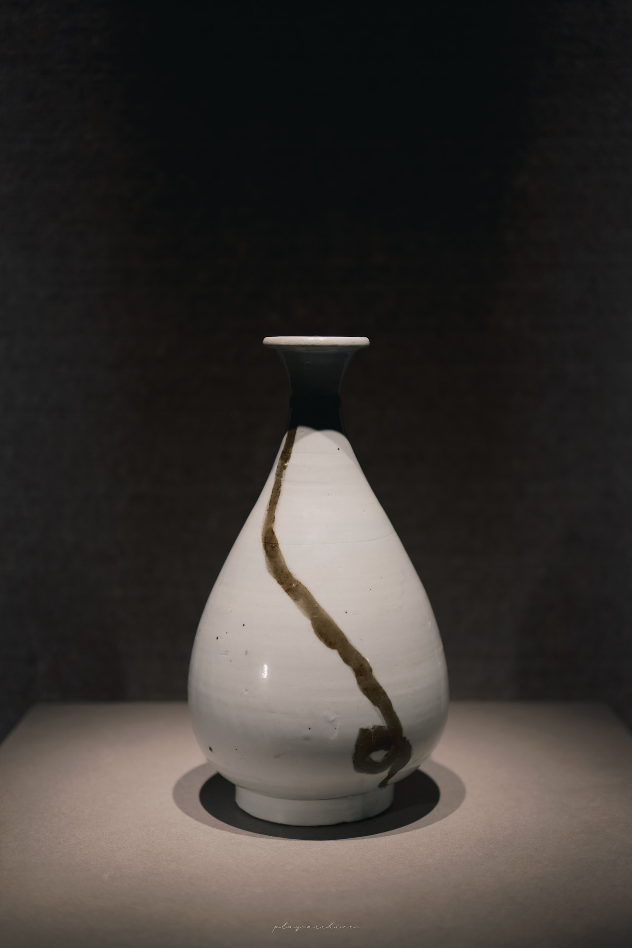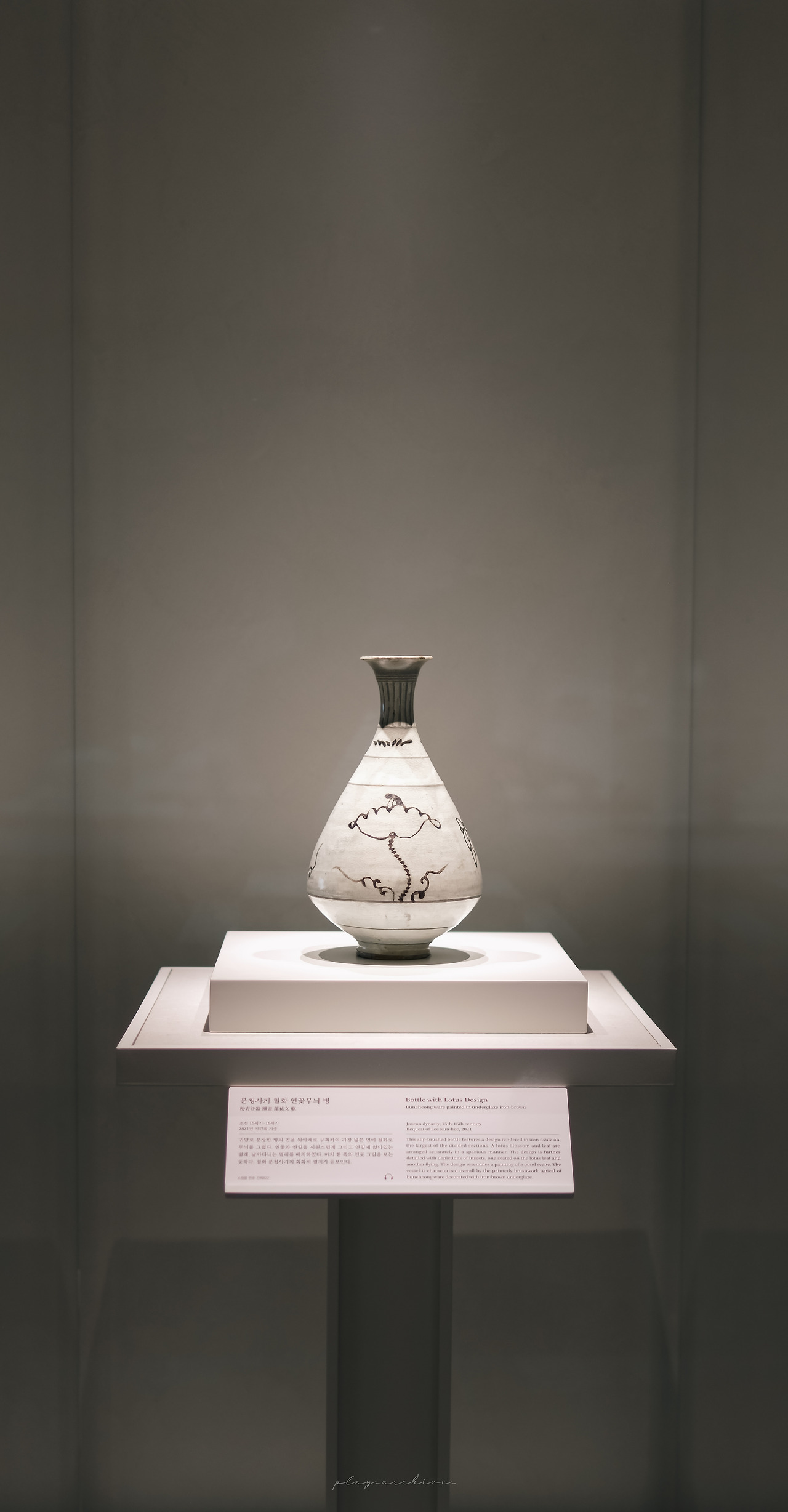 평소 촬영 시 피사체를 제외한 주변부가 나오는 것을 선호하지 않아서 화각을 더 깊게 들어가는 편인데 이 분청사기는 전시해 놓은 자태가 너무 완벽해서 유리와 받침 부분까지 다 나오게 세로 구도로 촬영했다.