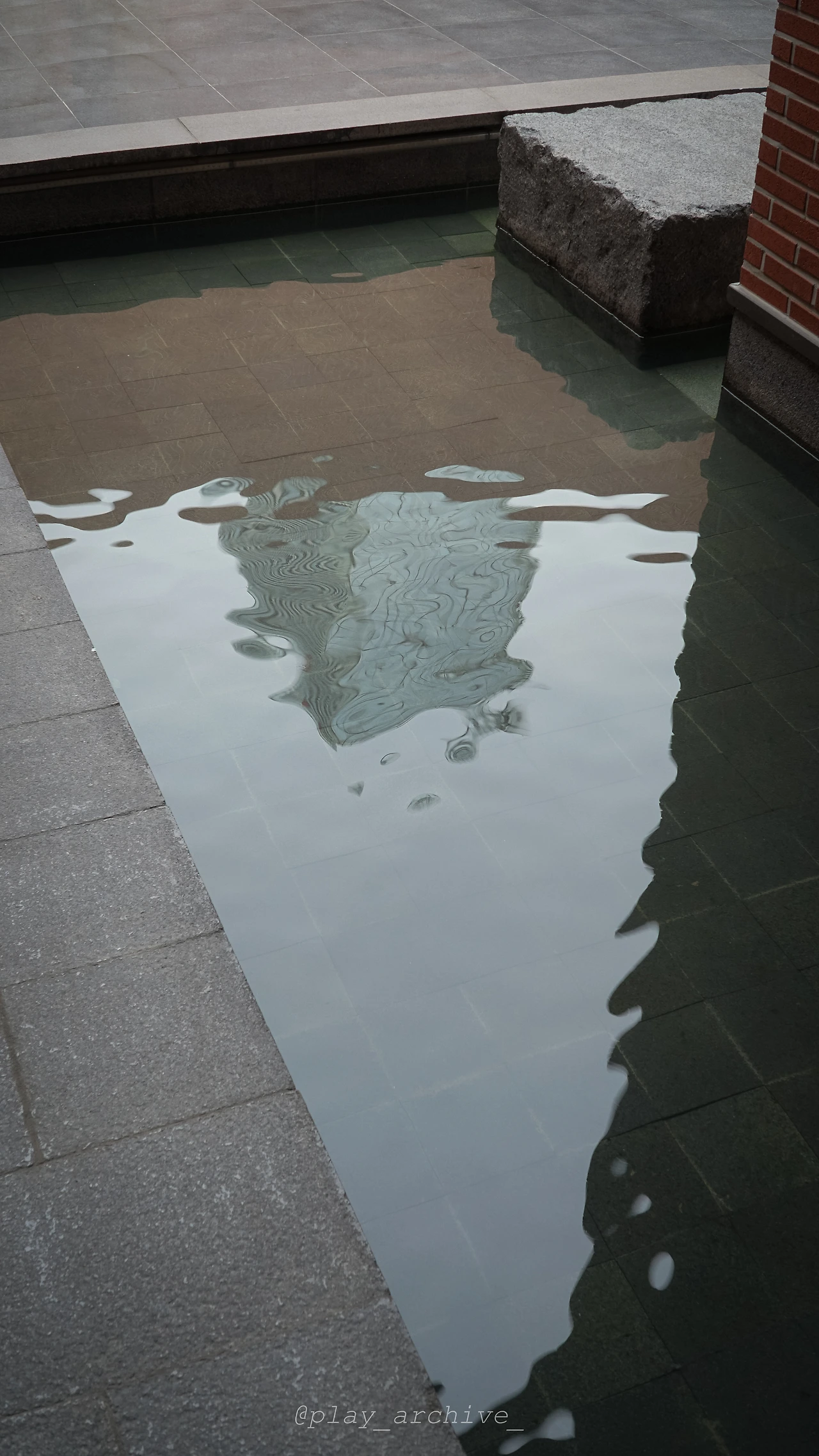 곳곳에 작은 물길이 흐른다. 물에 비친 조형물을 담고 싶었는데 아쉽게도 옆 건물이 나왔다.