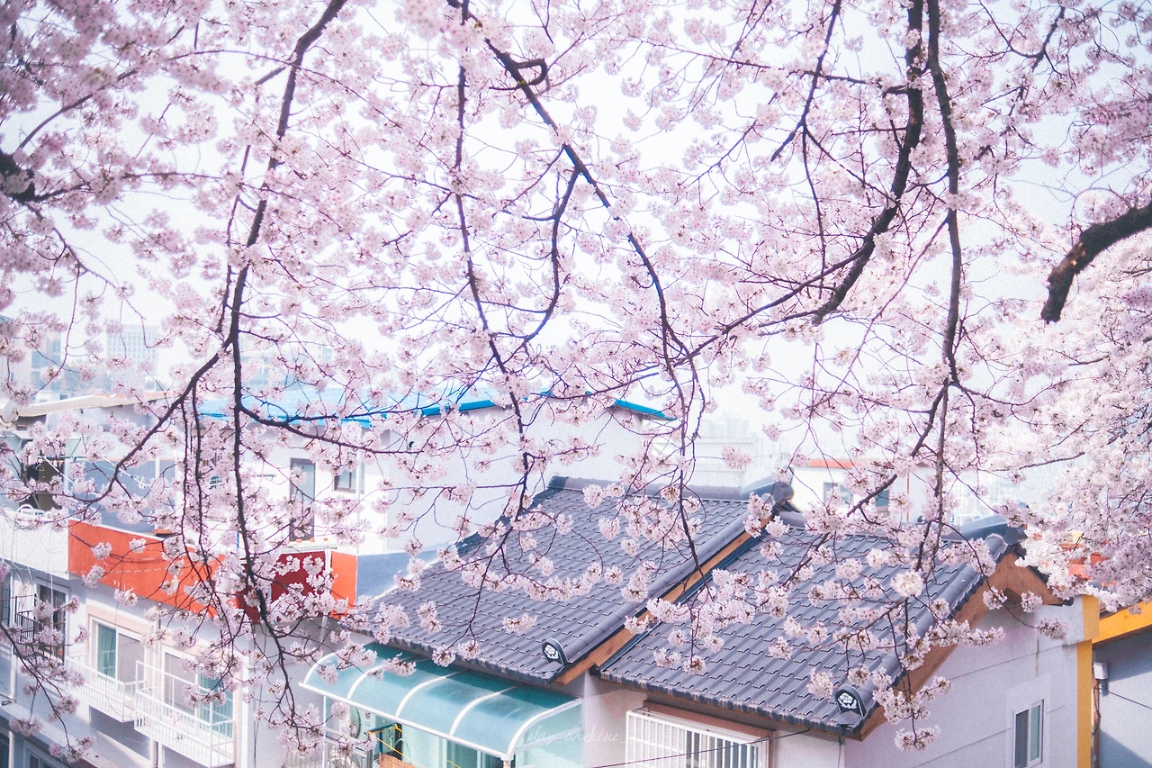 이곳은 벚꽃으로도 유명하지만 데크길 옆 주택가들에서 오래된 정취를 느낄 수 있다. 주택가와 함께 담아낸 이 사진은 내년 이맘때에도 쓸 수 있을 것 같아 다행이다.