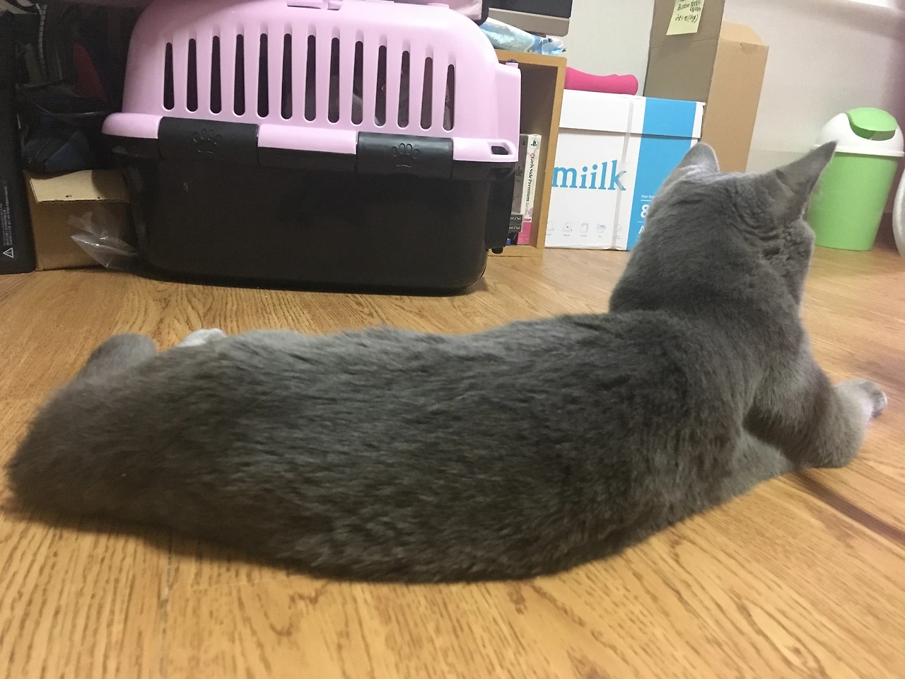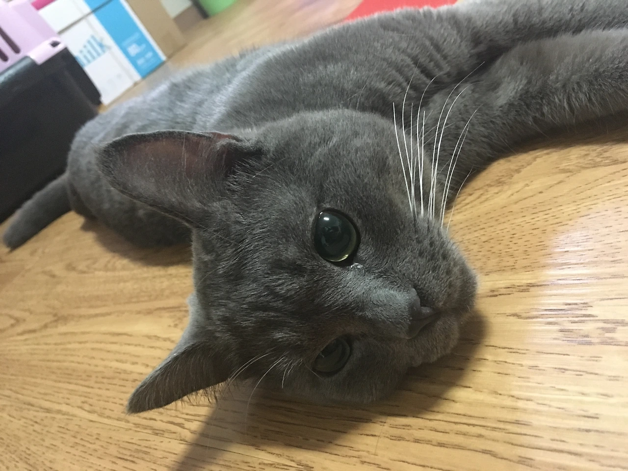 바닥에 뺨을 비벼보는 회색 털뭉치.