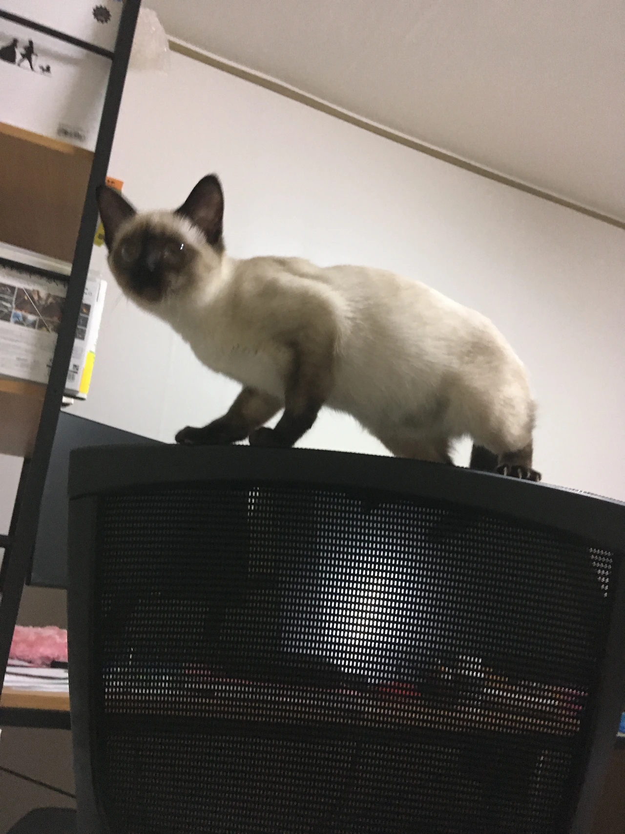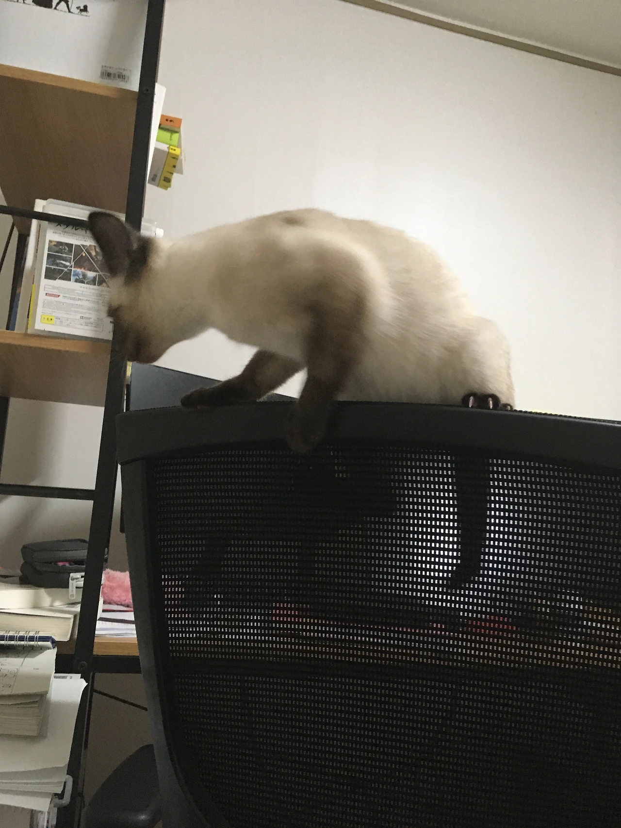 의자 등받이 위에 올라가는 것이 좋은 나미고양.