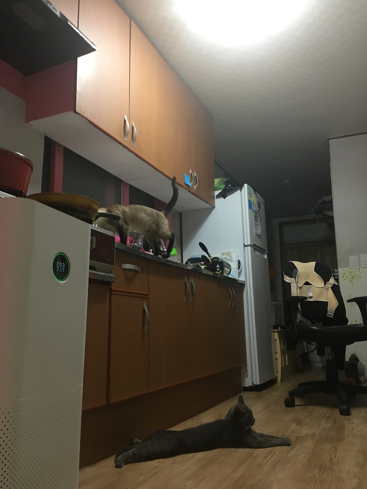 그리고 싱크대에서 도움닫기를 해서 냉장고 위까지 올라가게 되었다!