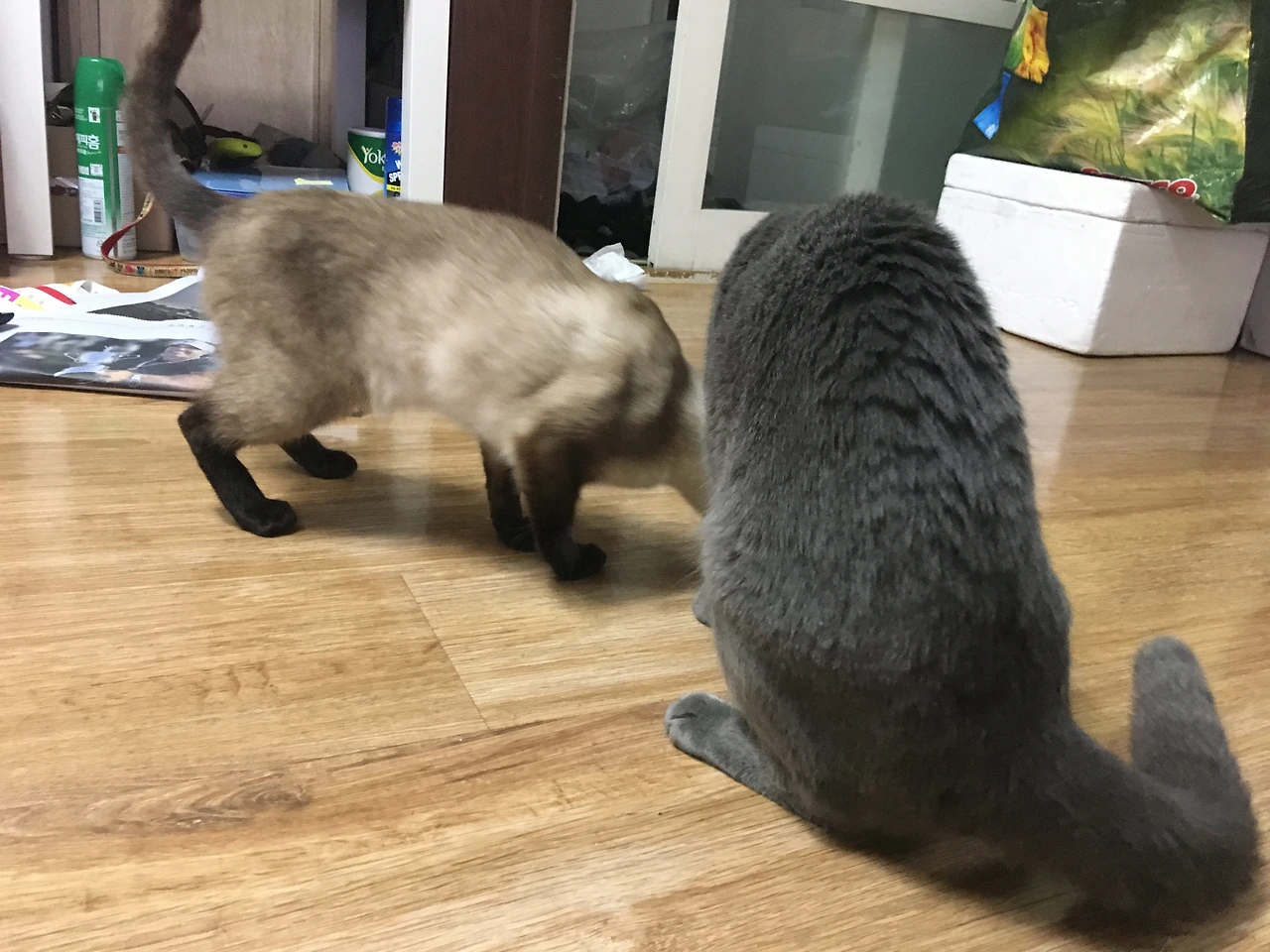 한 살이 된 고양이는 여전히 폴짝 폴짝 뛰어다니며