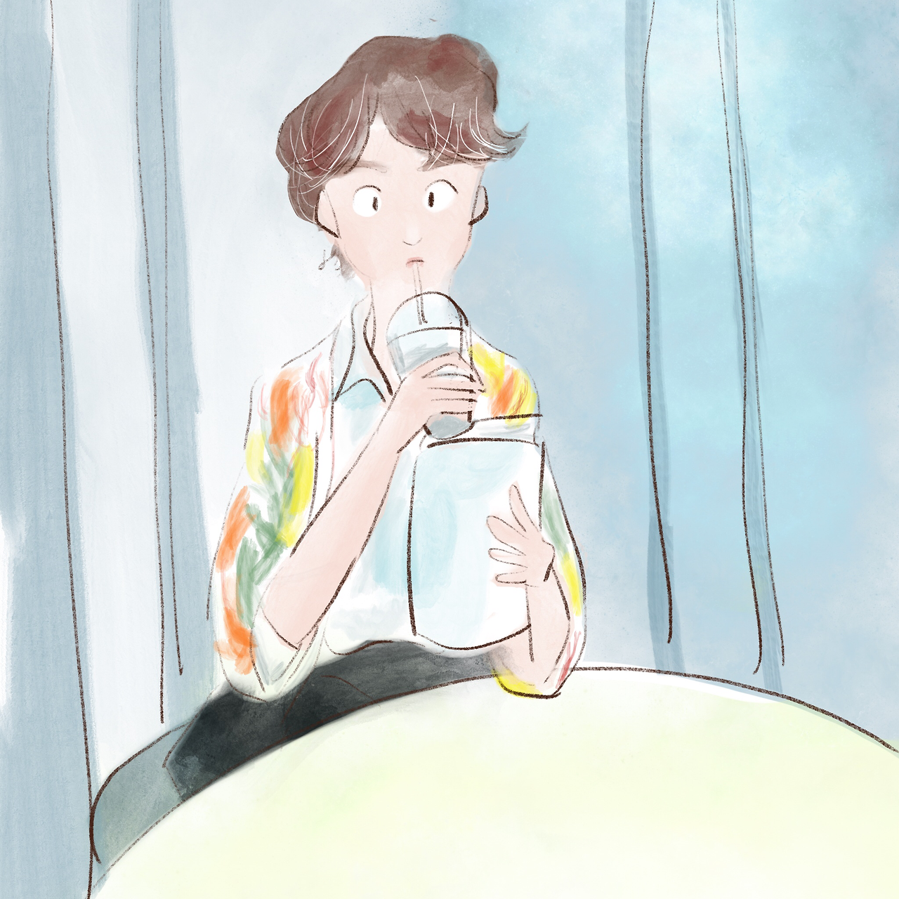 "지금 삐져서 이러고 있는 거예요. 이러면 얼굴이 안 보이는 줄 알아요."
