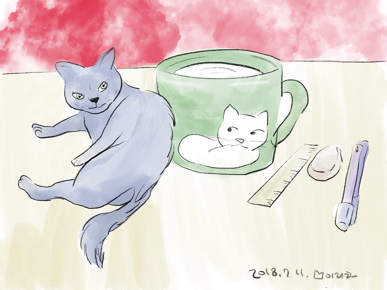사진상으로 보는 하얀 고양이는 태평하게 널부러져 있었다.