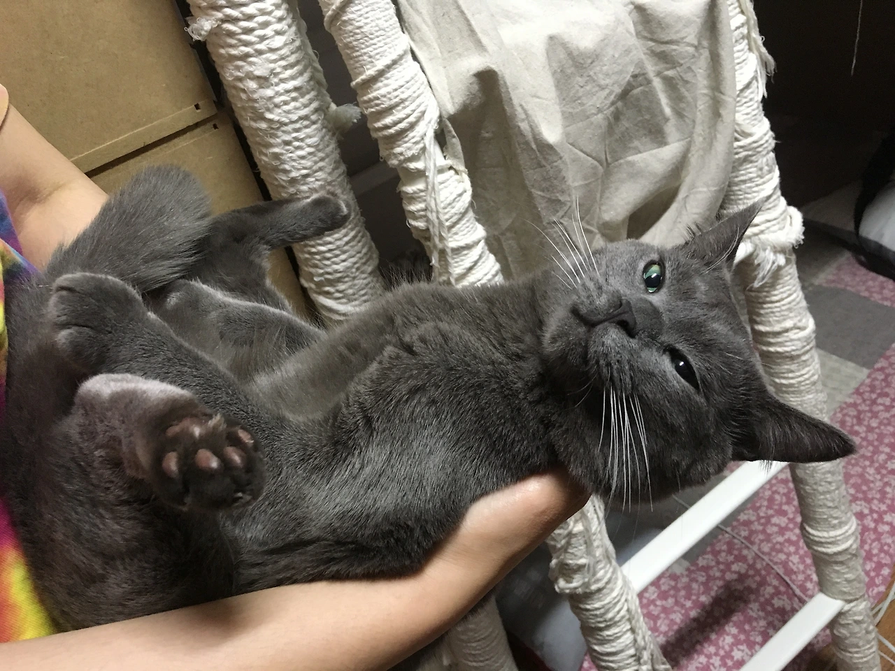 갑자기 흔드는 것을 멈추고 고양이를 안아버리고 싶어진다.