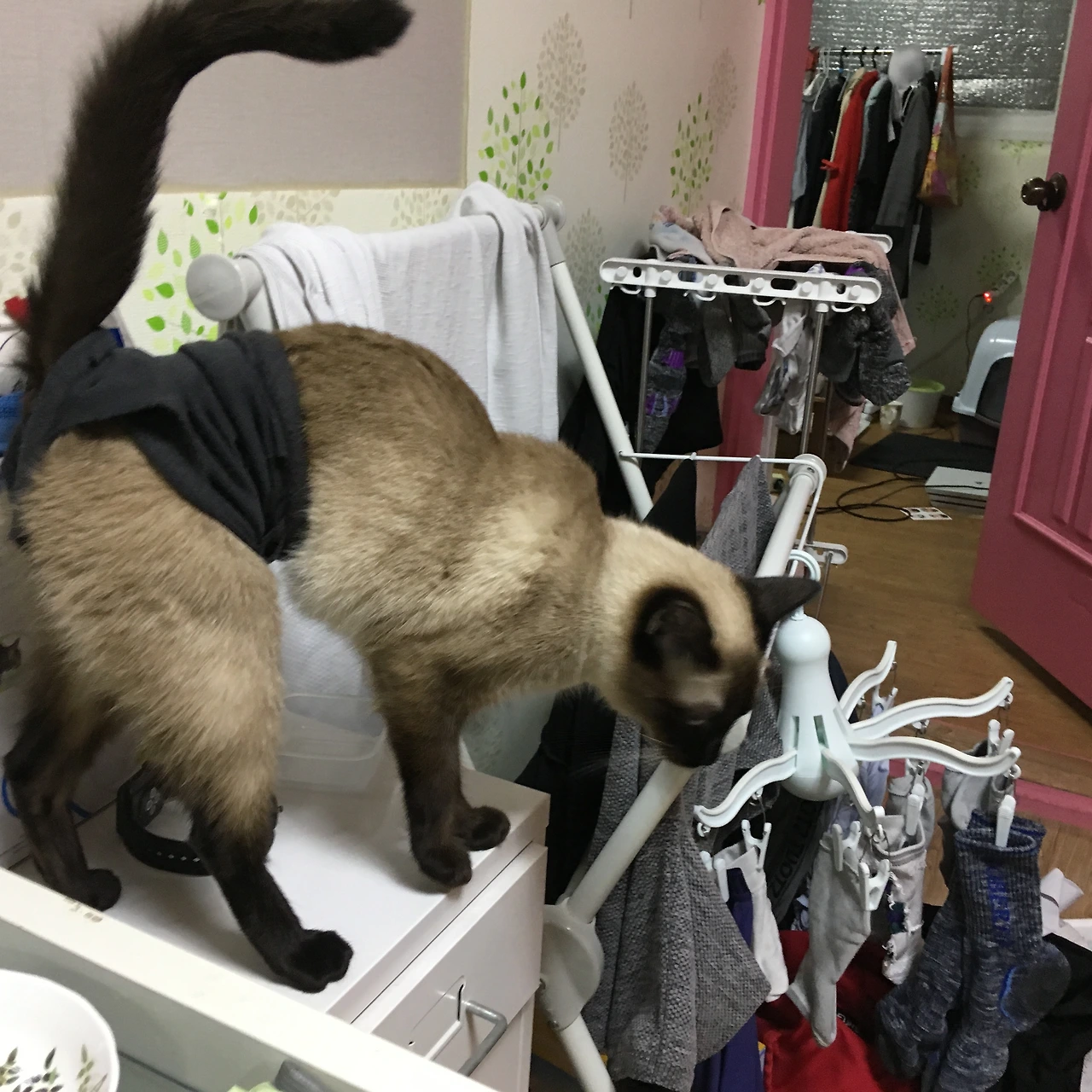 발정이 와서 누나에게 덤벼들었지만 계속 냥펀치를 맞고 쫓겨났다.