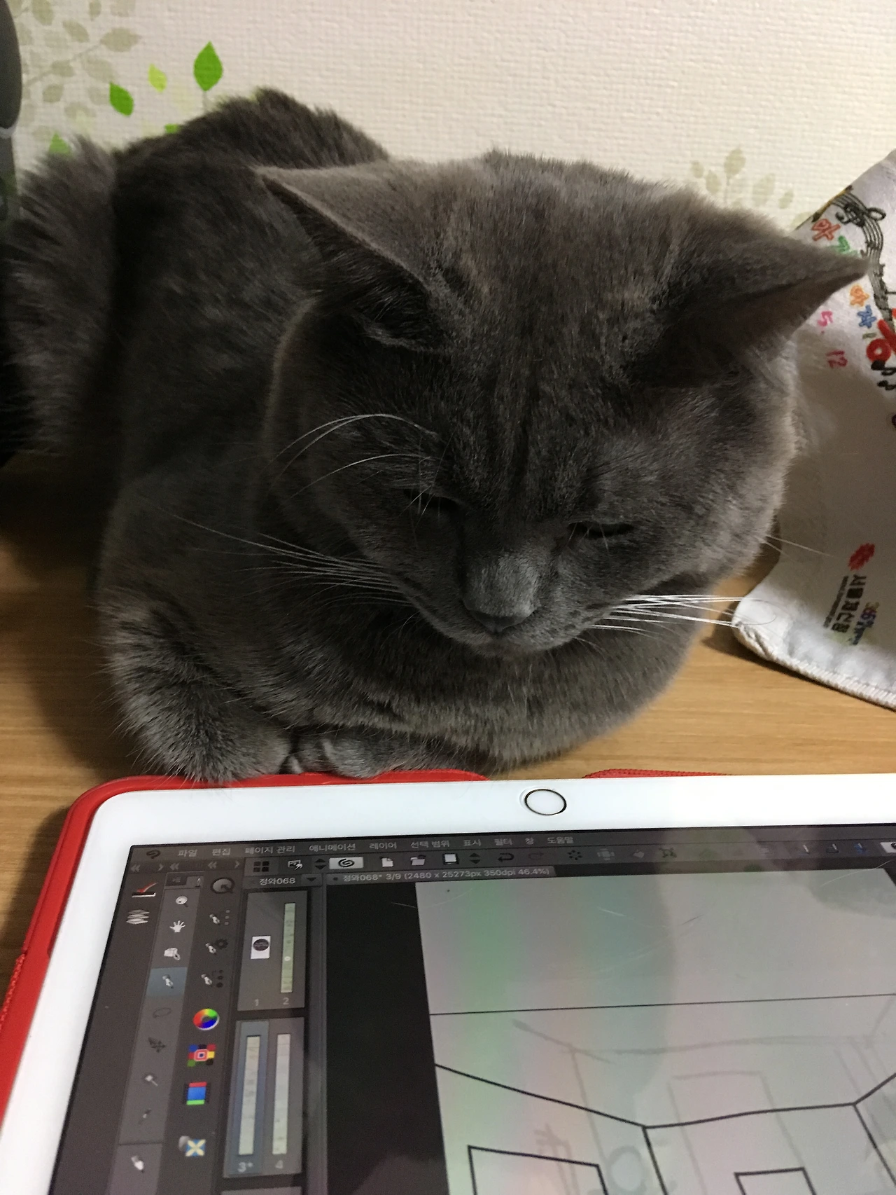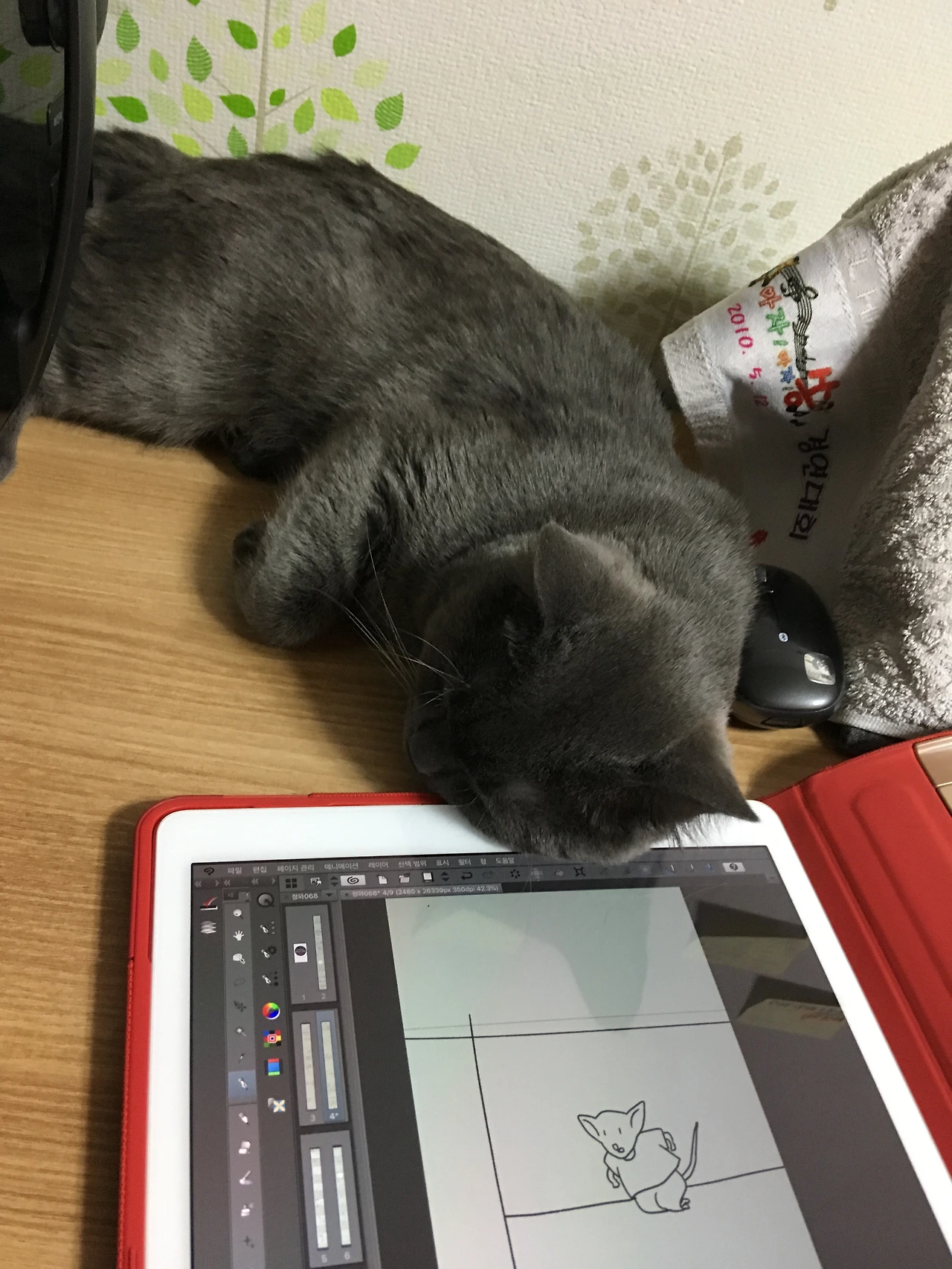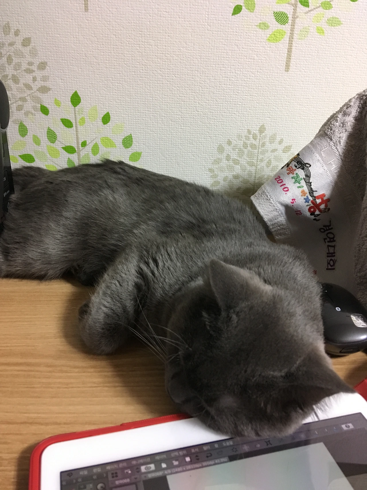 그렇게 작업하는 나를 바라보다가 아예 고개를 처박고 잠이 들었다.