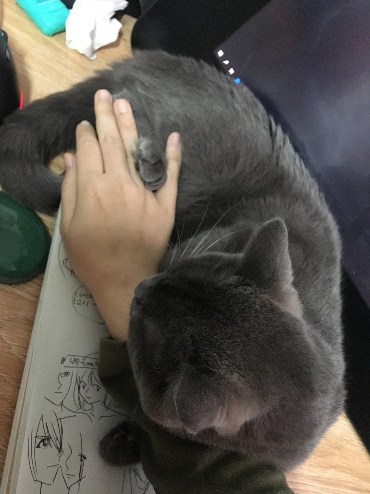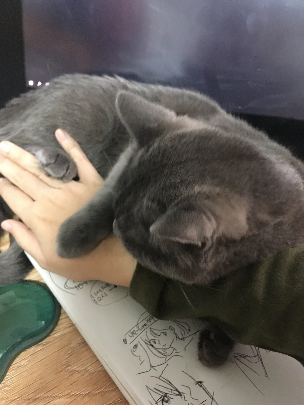 둘째 고양이가 오른손을 붙잡고 못 움직이게 해서 10분 동안 가만히 지켜보았다.