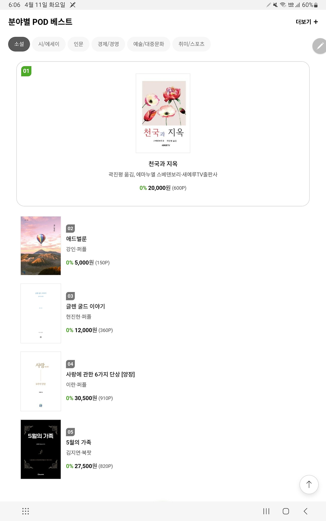 교보문고 POD북 소설 부분 4위