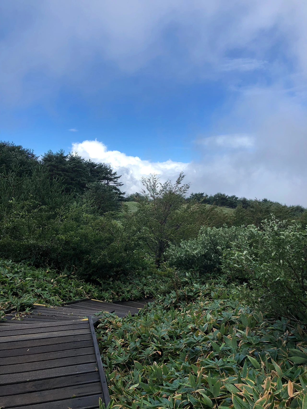 입산 통제의 아쉬움에 울상 짓고 선택한 플랜 B가 어리목에서 윗세오름으로 이어지는 코스였는데, 산행 초반에는 울상인 어린아이 달래듯 반겨주는 쾌청한 어리목을 만났다. 초록 숲 사이로 반겨주는 따뜻한 햇살과 시원한 바람, 먹구름 뒤로 가려졌던 파란 하늘이 얼굴 빼꼼 내밀 때까지도 산을 오르는 여정에는 여유가 넘쳤다.