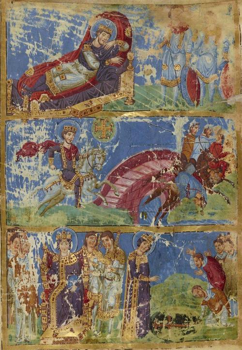 작가 미상의 콘스탄티누스 1세의 꿈과 밀비우스 다리 전투를 표현한 그림. 사진=프랑스 국립 도서관