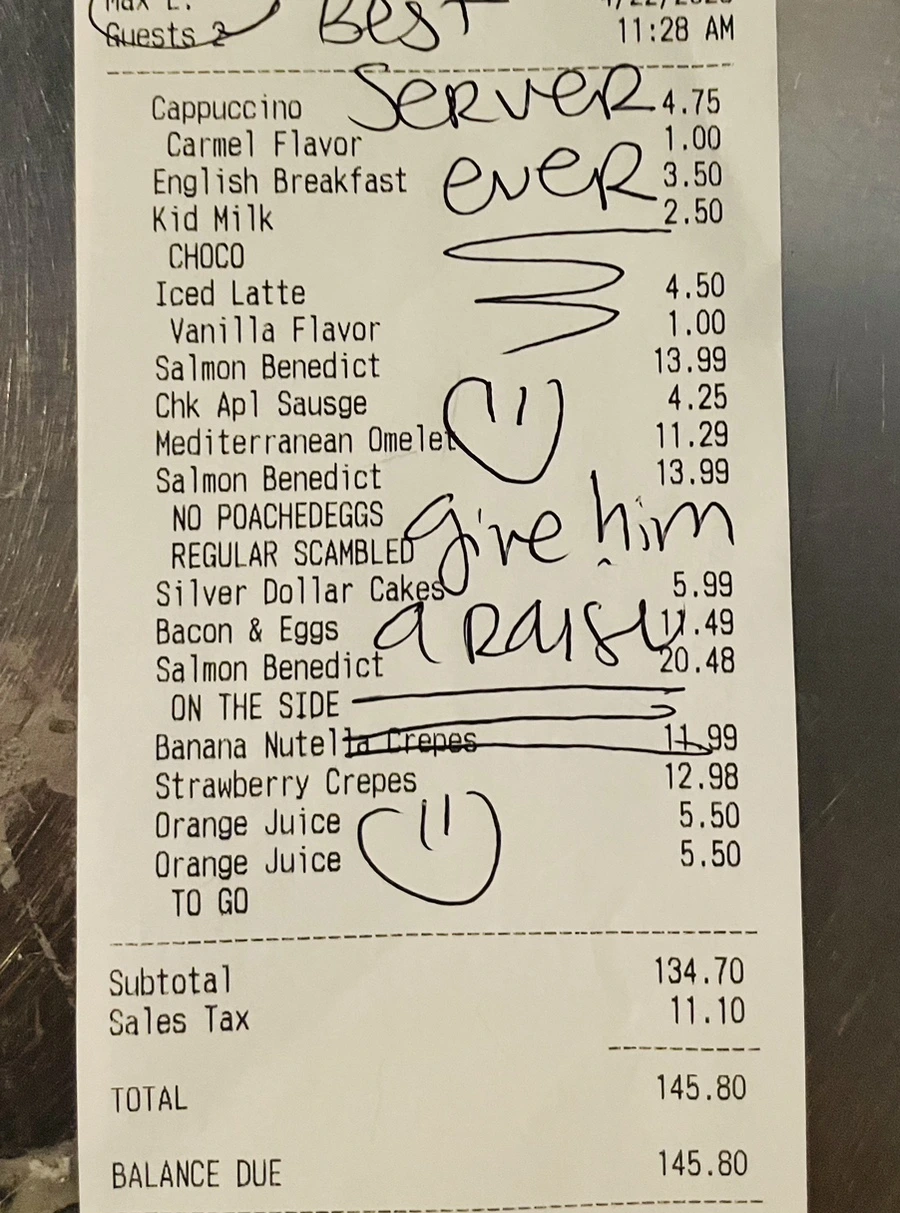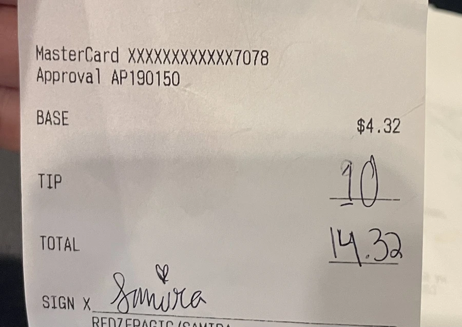 23불 식사에 40불 팁을 놓았다. 실수인 줄 알았다. 그녀는 왜 팁을 그렇게 놓았을까?