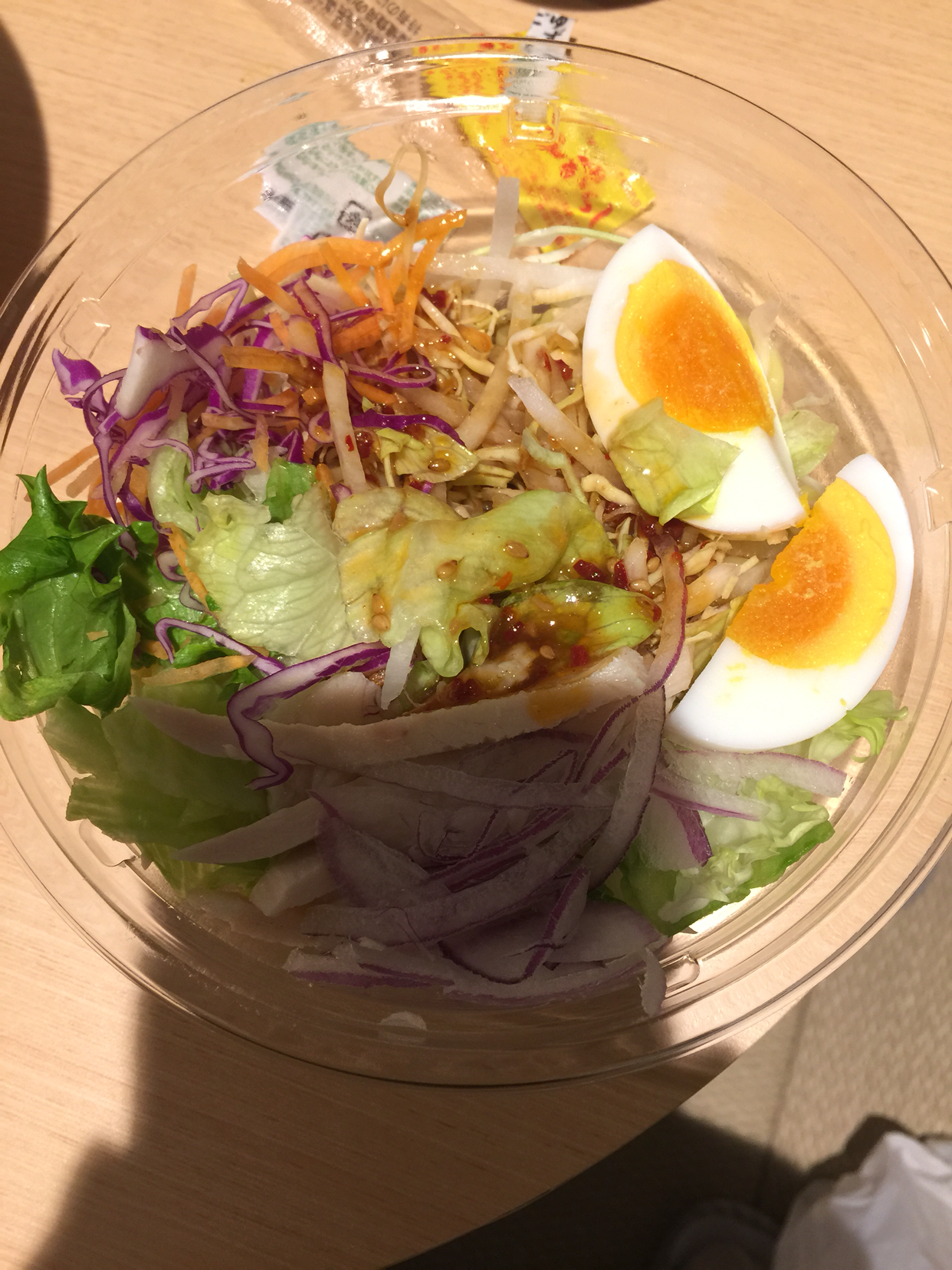 양파, 오이, 양상추, 적양배추, 삶은 달걀과