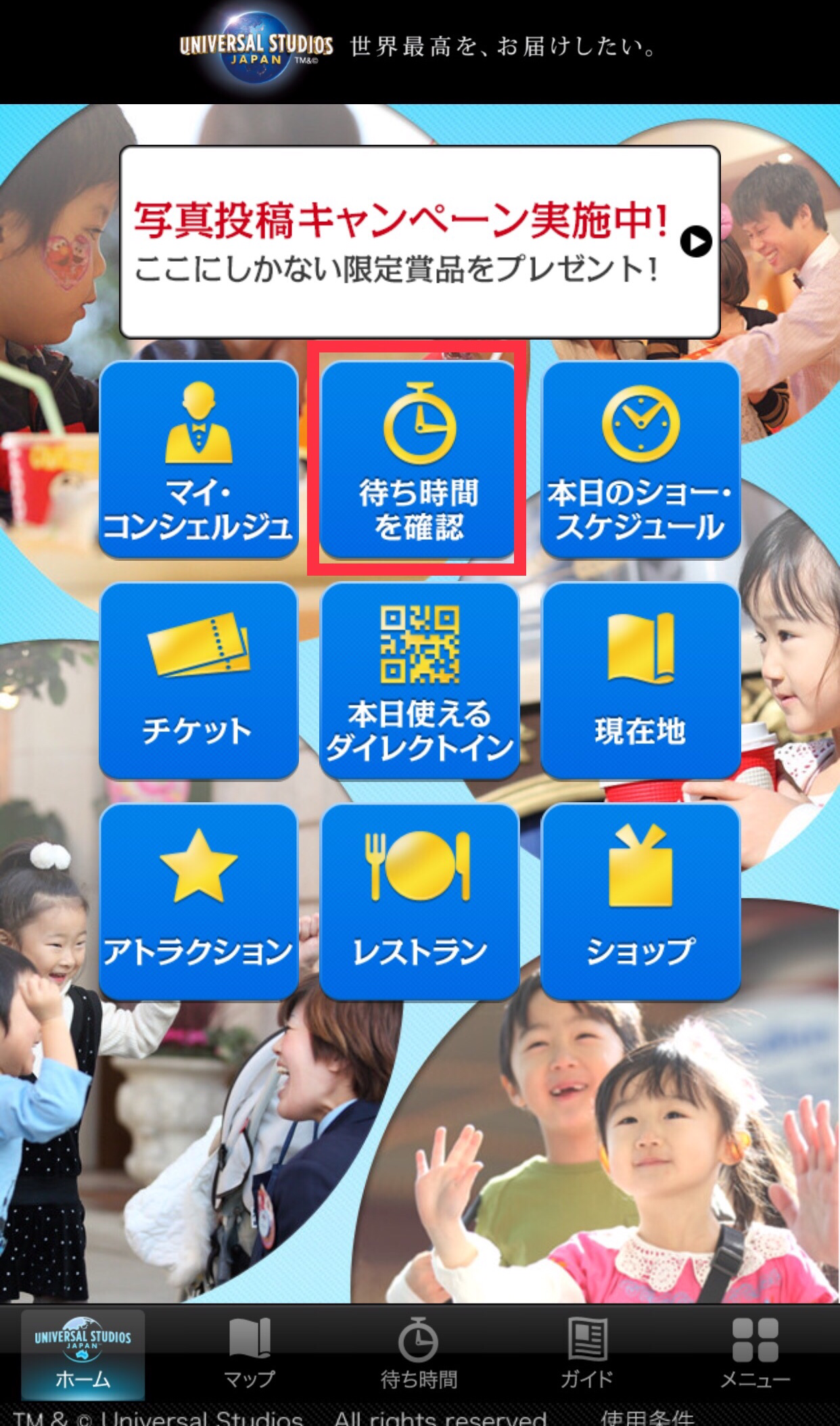 유니버셜 정보 어플에서 대기시간을 알 수 있다.