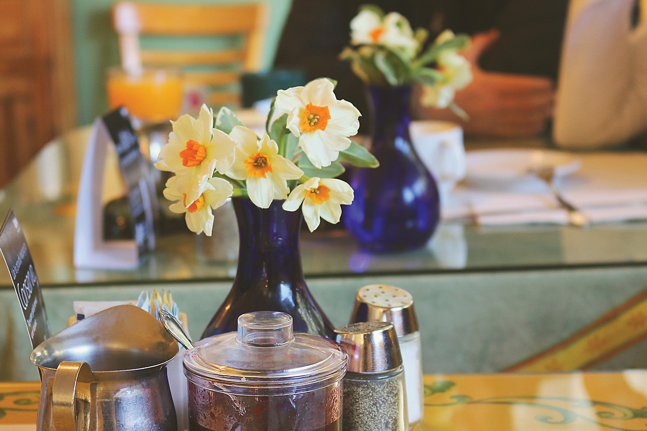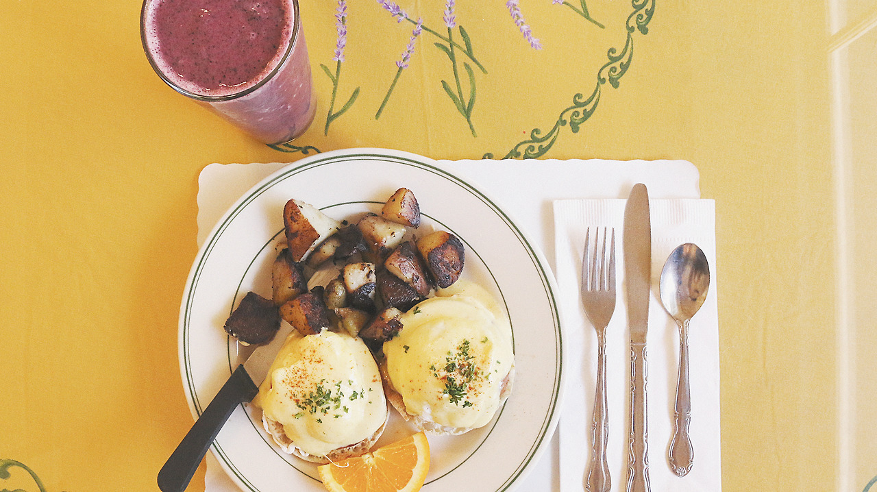 나는 에그 베네딕트와 스무디를 주문했 다.