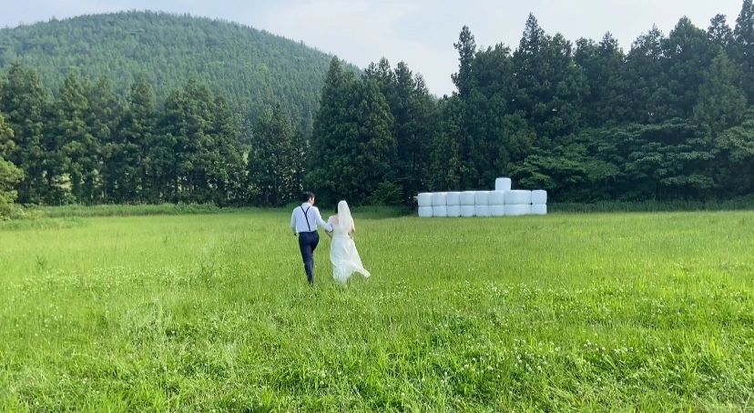 그래서 사실 이번 웨딩 촬영에 자신이 있었다. 디지털카메라가 아닌 필름 카메라 작업이라 같은 포즈를 여러 번 반복하지 않아도 될 것이라고 생각했고(어떻게 나왔는지 확인할 수 없으므로), 작가님 성향상 어려운 포즈를 요구하지는 않을 것 같다고 생각했기 때문이다. 촬영 당일, 작가님을 만나 한 시간 정도 미팅을 했고(그냥 수다만 떨더라) 네 시간 정도 촬영을 했다. 장소는 최대한 제주스러운 들판, 메밀밭, 마을로 골랐다. 예상했던 대로 마네킹 같은 포즈보다는 뛰고, 걷고, 춤추고, 수다 떠는 씬이 더 많았다. 2인 작가라 여러 각도에서 우릴 담더라. 헬퍼 실장님도 휴대폰으로 우리의 순간을 찍어 주셨다. 이거지! 내가 원했던 게. 곧 왼쪽, 오른쪽, 위, 아래 모든 각도의 우리를 볼 수 있겠군.
