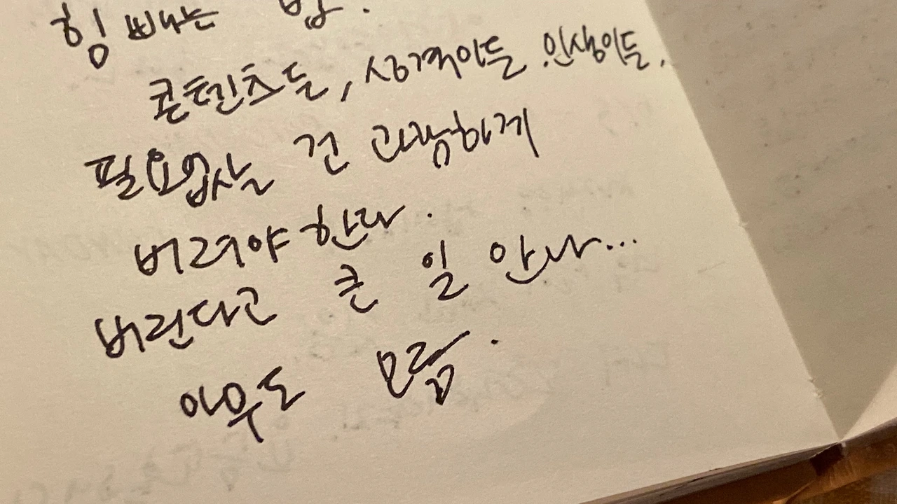 요즘엔 그래서 여러모로 힘을 빼는 연습 중이다. 글도, 성격도, 인생도 좀 버리는 게 필요하다. 효율만 중시하고 선택과 집중만 믿는 사람들은 나랑 안 맞다고 생각했다. 그런데 그들을 벤치마킹해보는 것도 나쁘진 않겠다는 생각이 들었다. 몇 가지 실천해보니 좋은 점도 있었다. 먼저, 기사의 몇 문단을 덜어내고 발행했는데 그렇게 큰일이 나지 않았다. 마감 시간은 줄고 다음 기사를 준비할 시간이 늘었다. 몇몇 사람들에게 잘 보이는 것을 포기했다. 그랬더니 스트레스가 줄었고 좋아하는 사람들을 더 좋아할 수 있게 됐다.