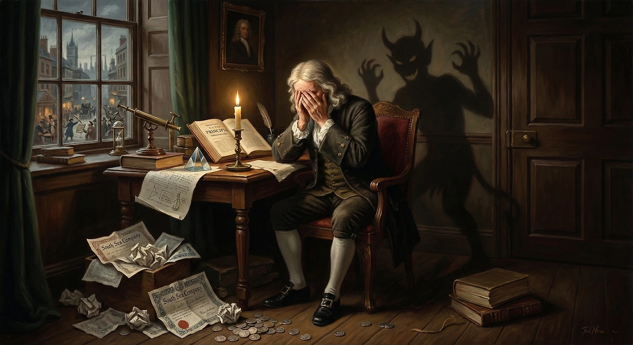 하지만 1720년 런던 금융가에서, 그는 처참하게 무너졌습니다. 그를 파산으로 몬 것은 풀지 못한 수학 난제가 아니었습니다. 바로 인간의 가장 깊은 곳에 웅크린 '탐욕'이라는 짐승이었습니다.